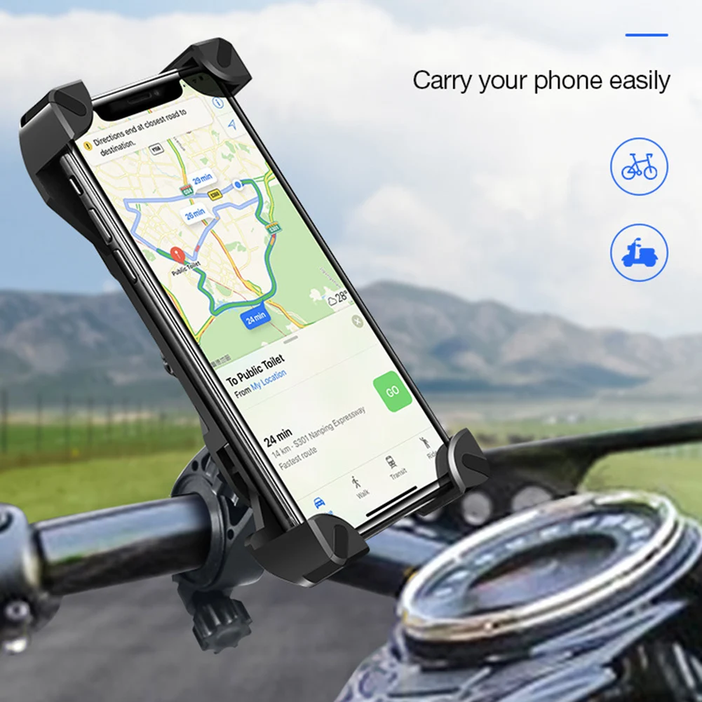 Держатель телефона на руль велосипеда или мотоцикла Характеристики: Держатель для телефона изготовлен из АБС-пластика, сверхпрочный и долговечный. Хлопковая подкладка EVI защищает ваш мобильный телефон от царапин. Четыре когтя надежно фиксируют телефон, предотвращая его падение при езде по жестким дорогам. Название товара: держатель телефона на велосипед Материал: ABS, EVI хлопок Особенности: портативный, удобный, прочный Размер: 12 см x 11 см x 6,3 см/4,72 дюйма x 4,33 дюйма x 2,48 дюйма (прибл.) Подходит для телефона шириной: 58 мм-90 мм/2,28 "-3,54" (прибл.) Подходит для телефона длиной: 115 мм-180 мм/4,53 "-7,09" (прибл.) Подходит для толщины телефона: в пределах 12 мм/0,47 "(прибл.) Примечания: Из-за разницы в освещении и настройках экрана цвет товара может сильно отличаться от изображений. Замеры сделаны вручную, поэтому возможны незначительные отклонения в размерах. Посылка входит: 1 держатель для телефона на велосипед