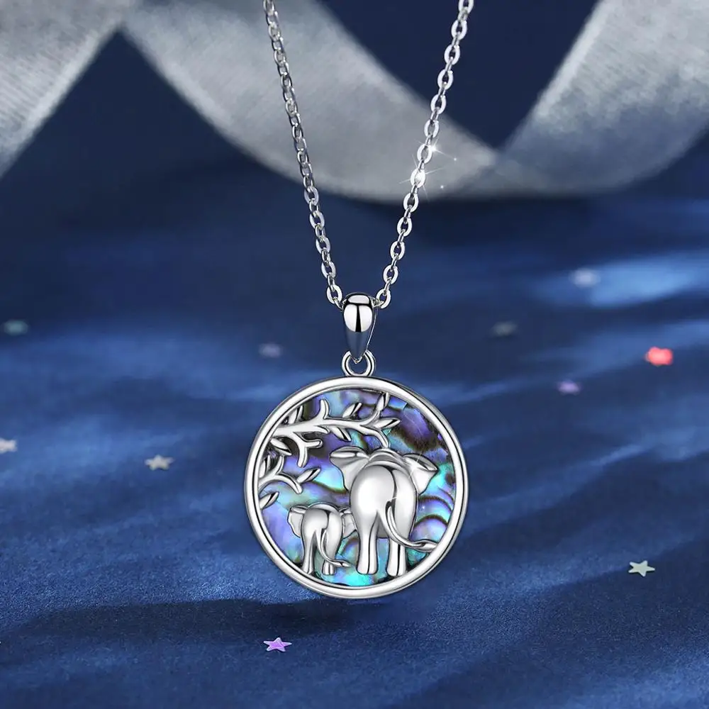 Юдора 925 стерлингового серебра Слон Мать ребенок дерево кулон ожерелье с мать жемчужное животное синий хорошее ювелирное изделие для женщин