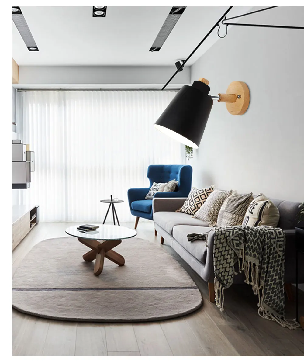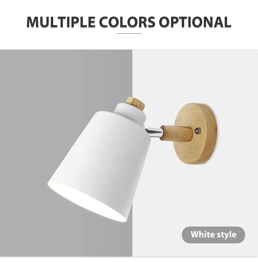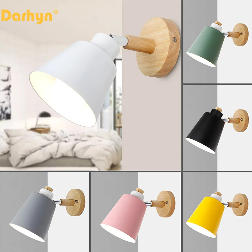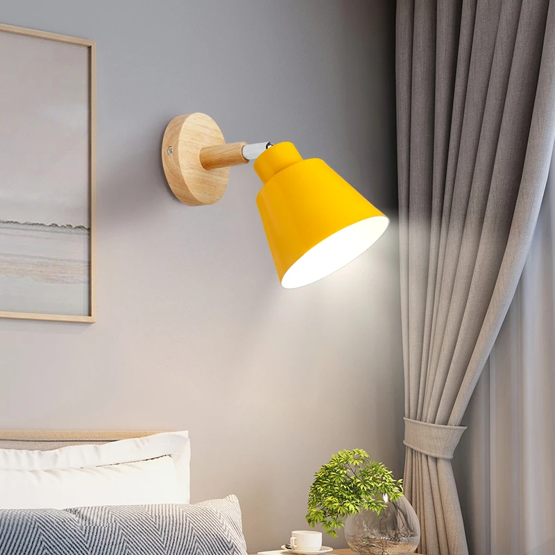 Светодиодная настенная лампа E27, прикроватный светильник в скандинавском стиле, простой современный настенный светильник для кабинета, спальни, регулируемый, 6 цветов