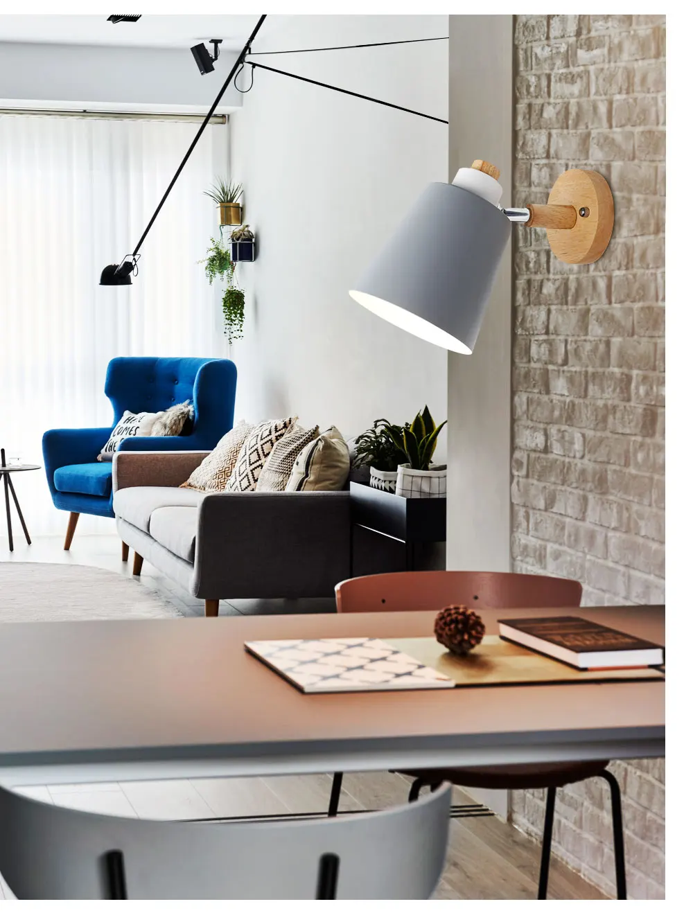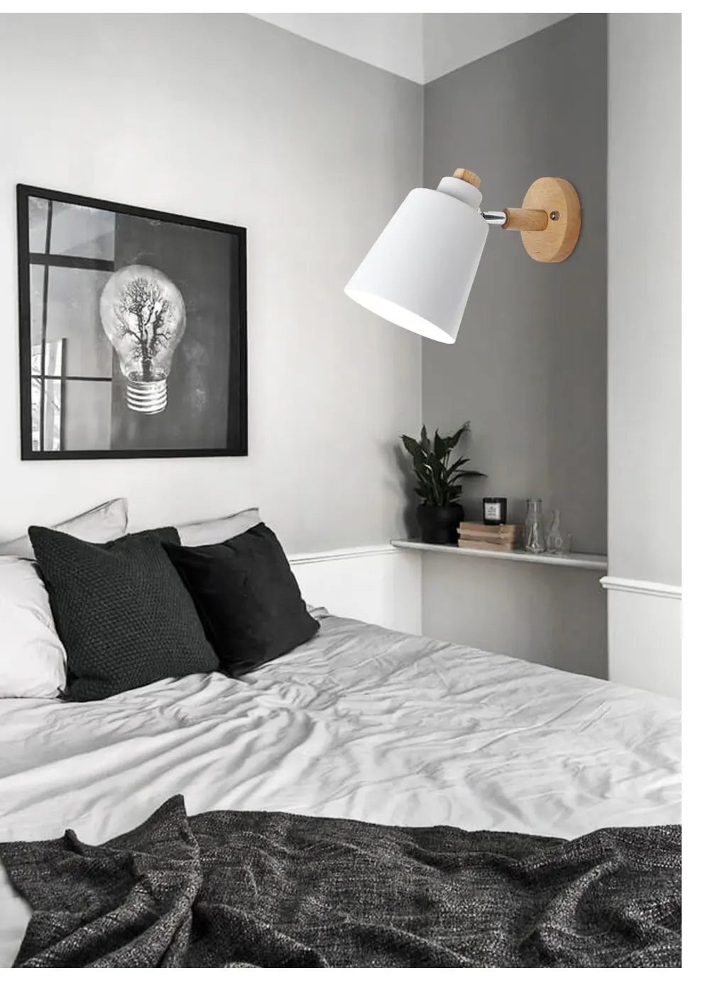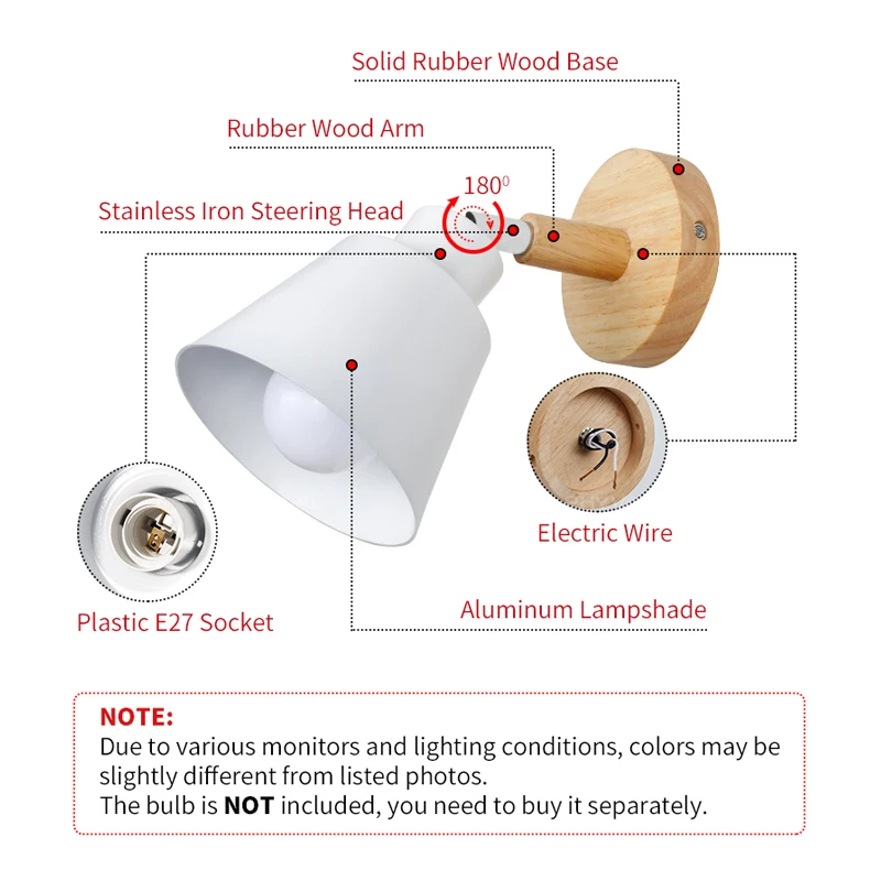 Светодиодная настенная лампа E27, прикроватный светильник в скандинавском стиле, простой современный настенный светильник для кабинета, спальни, регулируемый, 6 цветов