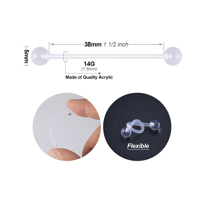 10 шт. 14 г УФ-акрил Bioflex и Промышленная Штанга из нержавеющей стали серьги, Надеваемые На ушной хрящ фиксатор украшения для пирсинга 1 12 дюйма (38 мм)