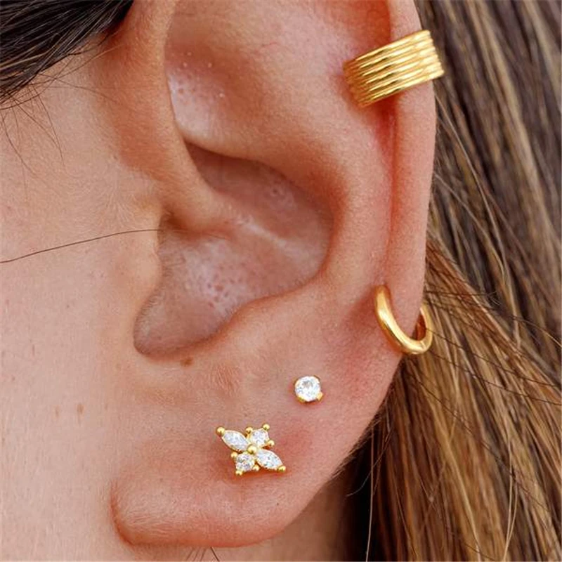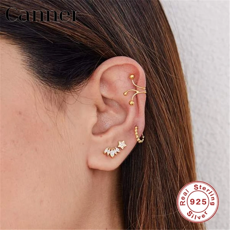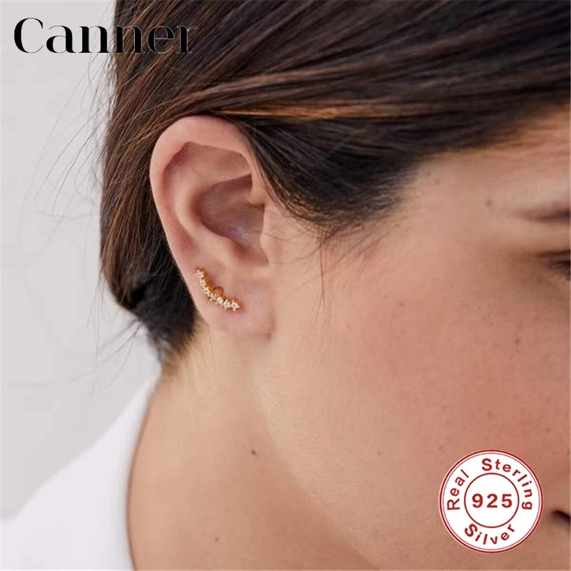 Серьги-гвоздики Canner W5 женские, Ювелирное Украшение из стерлингового серебра 925 пробы с геометрической формой завитка ушной раковины