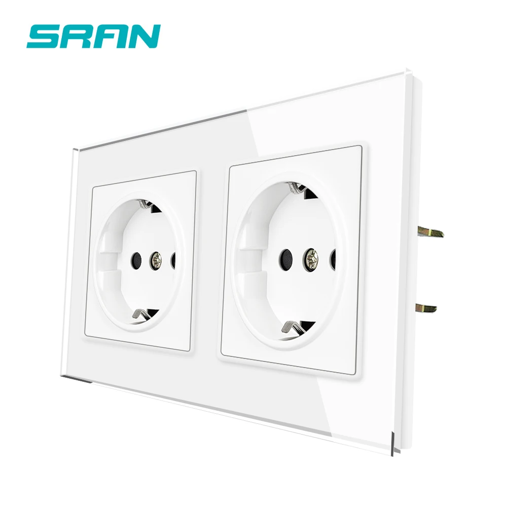 Настенная розетка европейского стандарта, белая прозрачная стеклянная панель, переменный ток 110 250 В 16 А, несколько европейских вилок, производитель F601-GR02