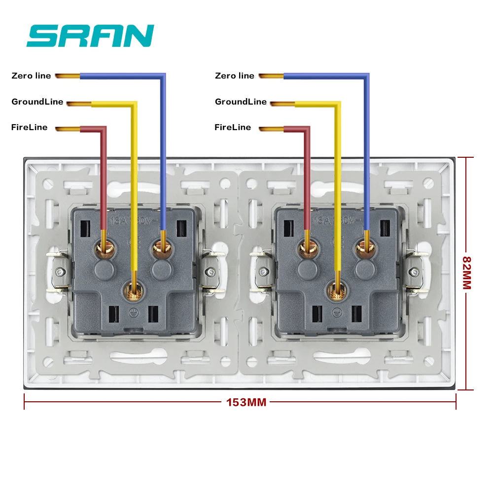 16A EU розетка 153 мм * 82 мм3 мм Хрустальное закаленное стекло