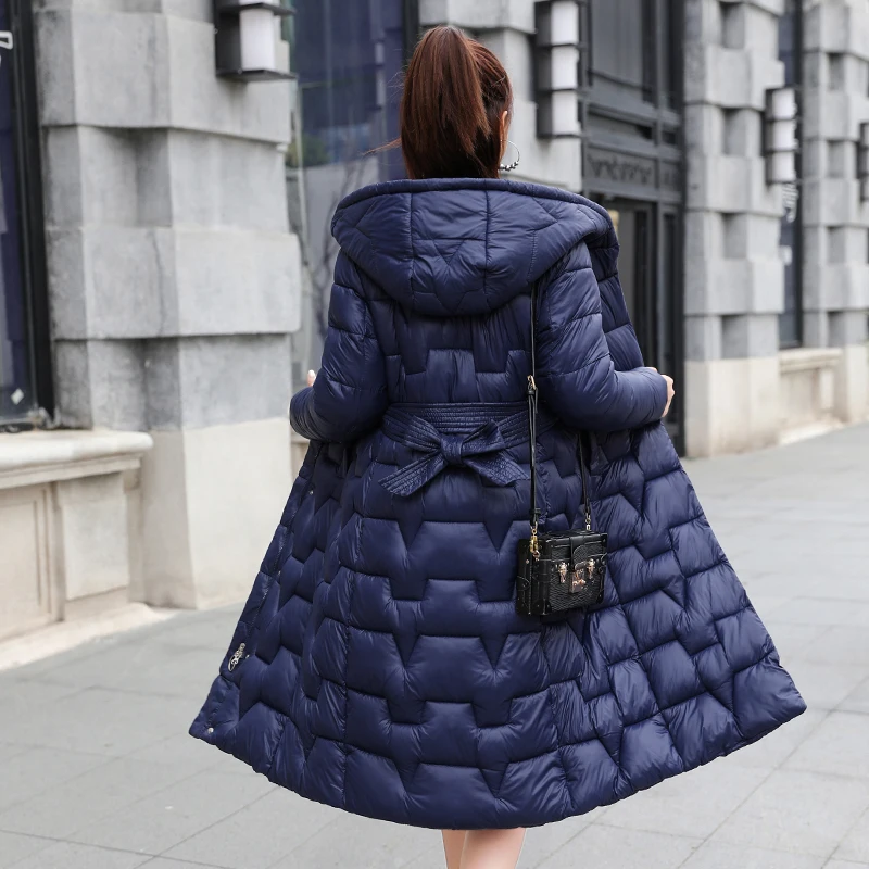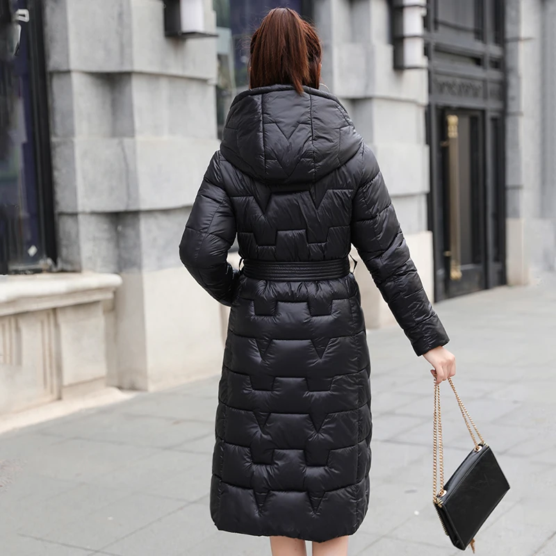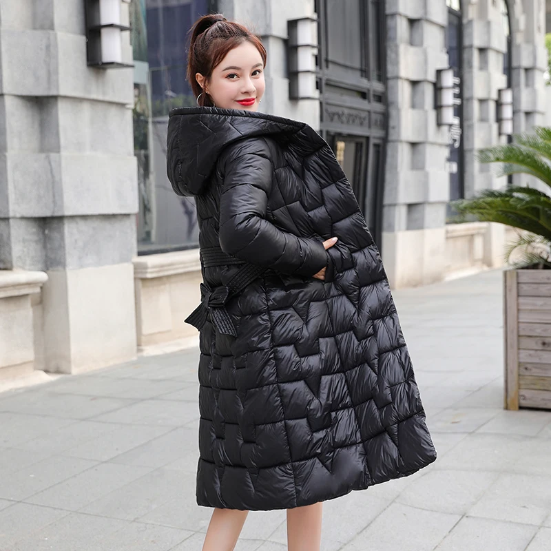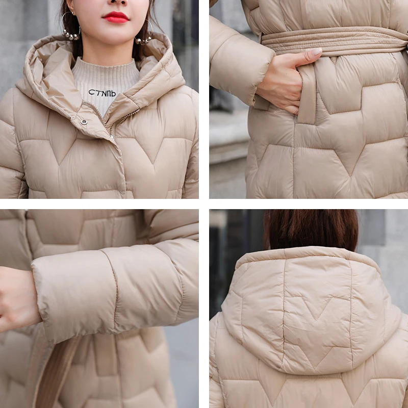 Женский пуховик с поясом, повседневное однотонное пальто с капюшоном, зима 2021