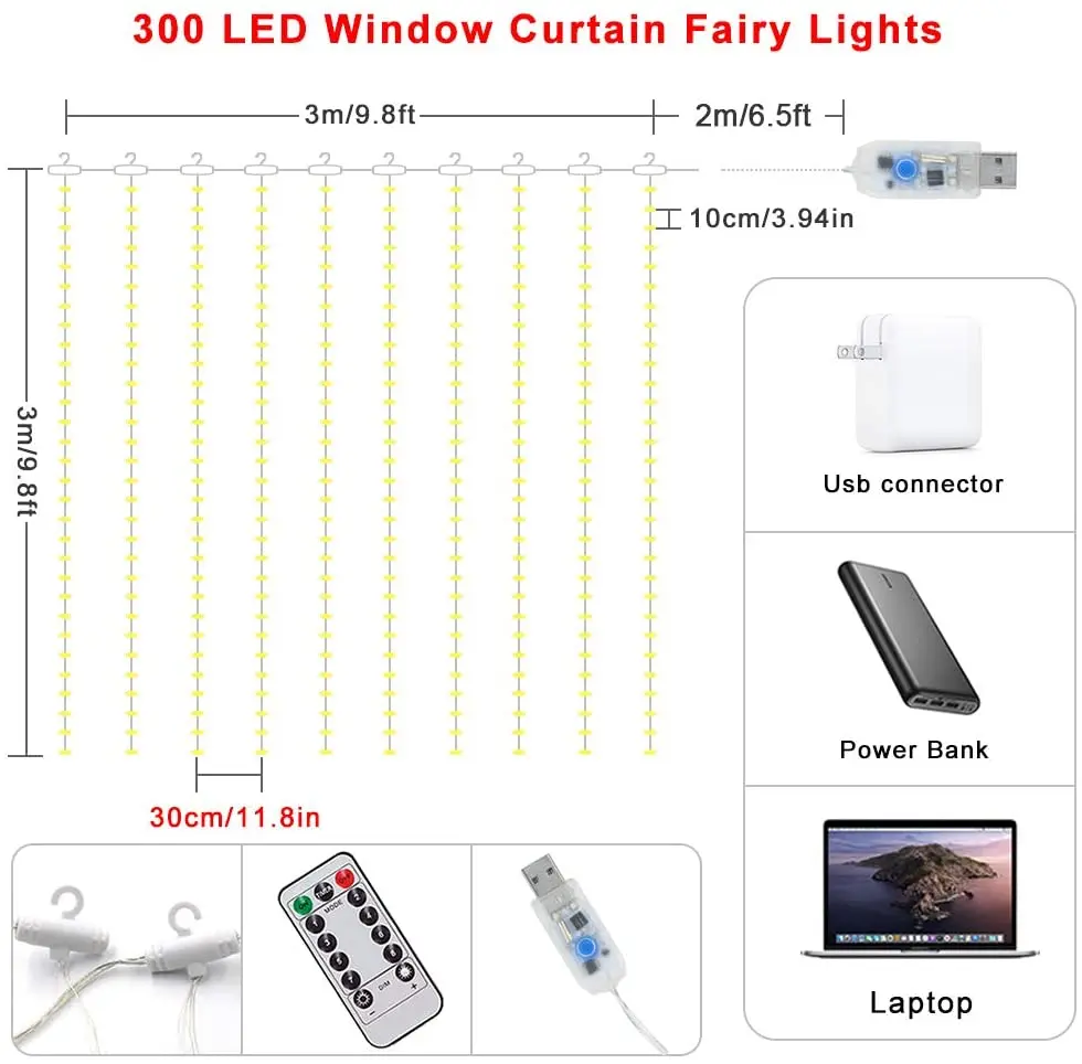 СВЕТОДИОДНАЯ Гирлянда-занавес, 3 х3 м, 300 светодиодов