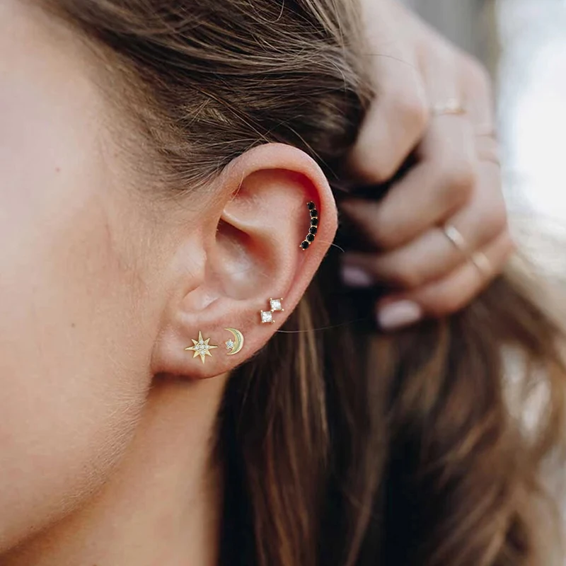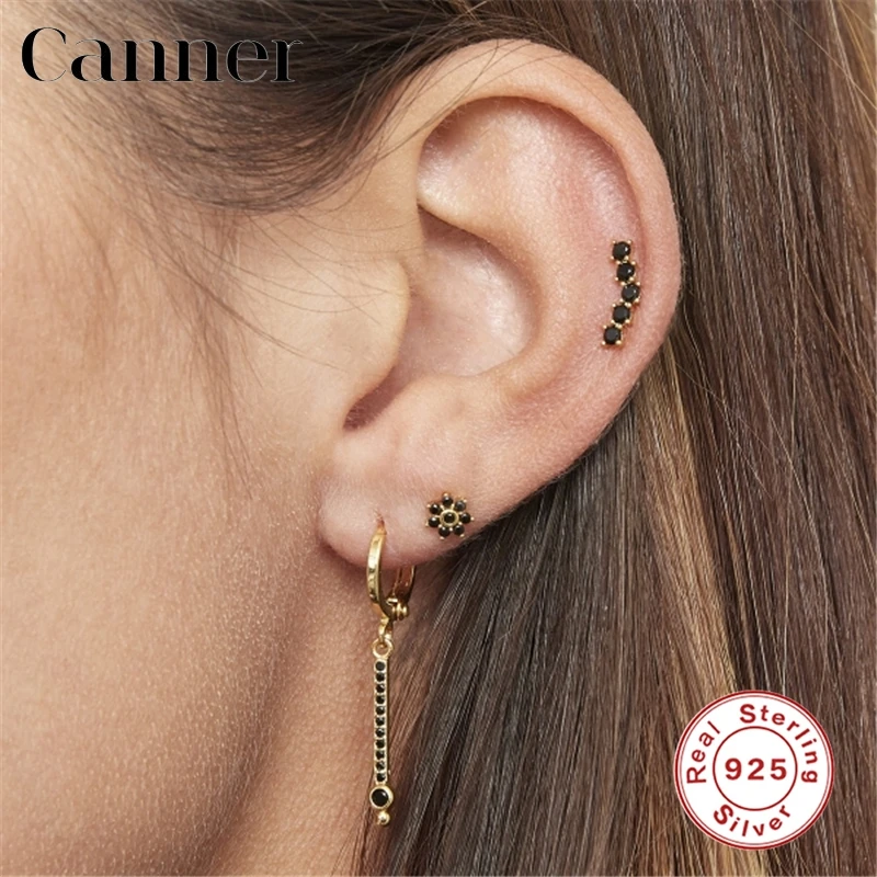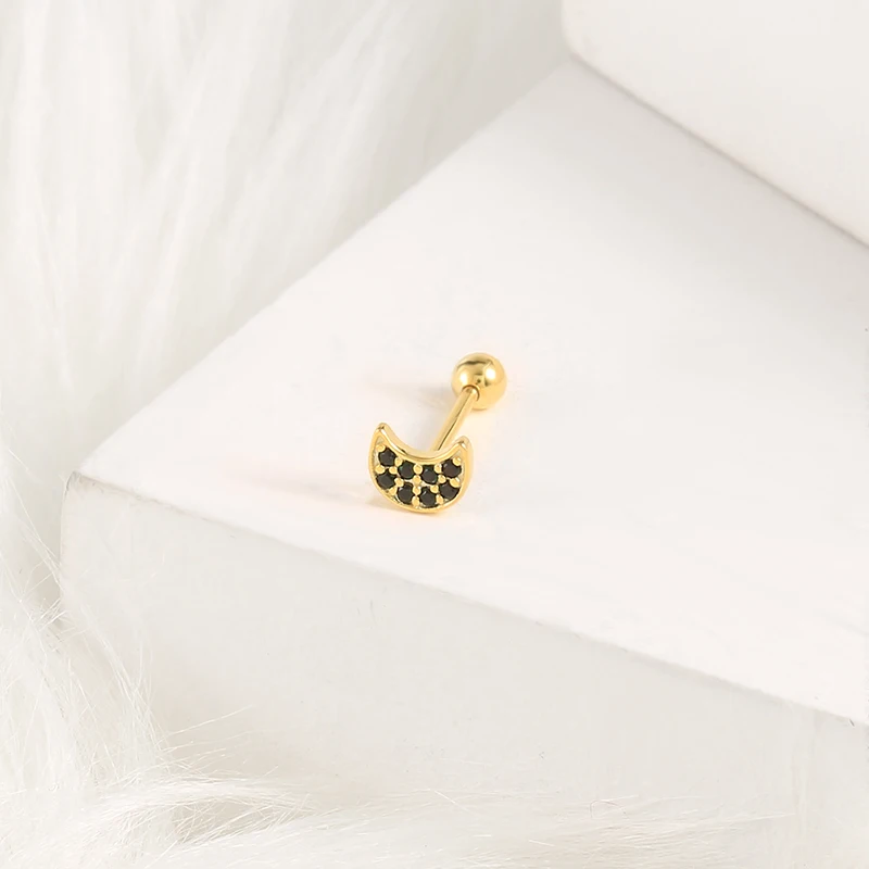 Серьги-гвоздики Canner W5 женские, Ювелирное Украшение для пирсинга из серебра с 925 пробы, завитка сердца, звезды, месяца, 1 шт.