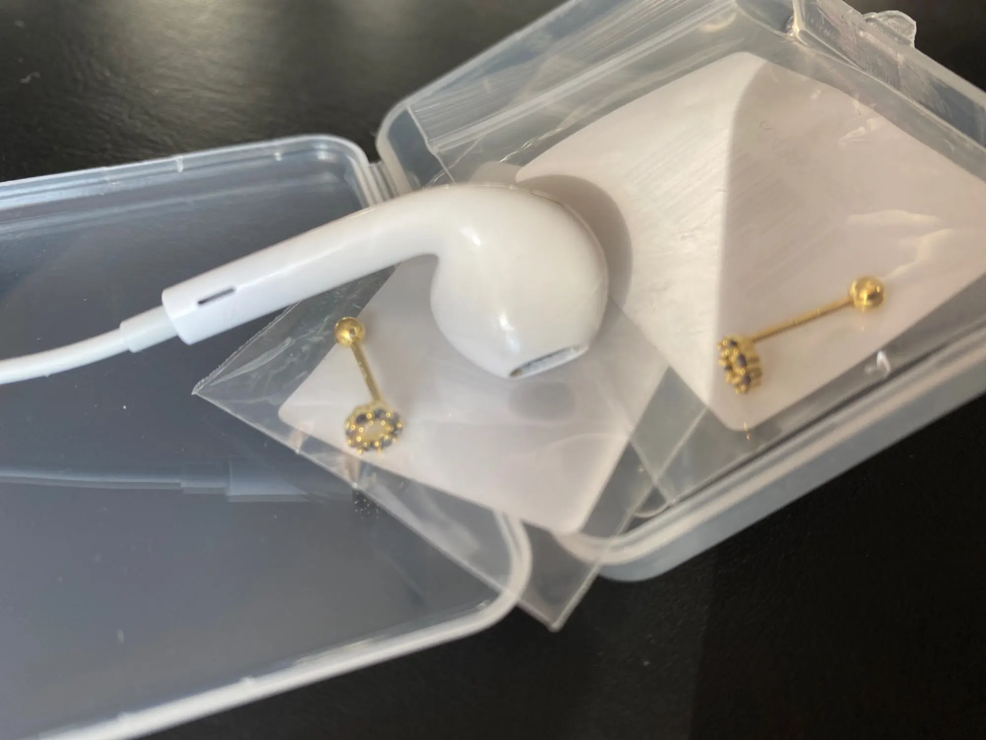 Так же, как на фото. В моем случае, он немного отваливается, потому что у меня тонкая Ушная пряжка. Потребовался месяц, чтобы прибыть.