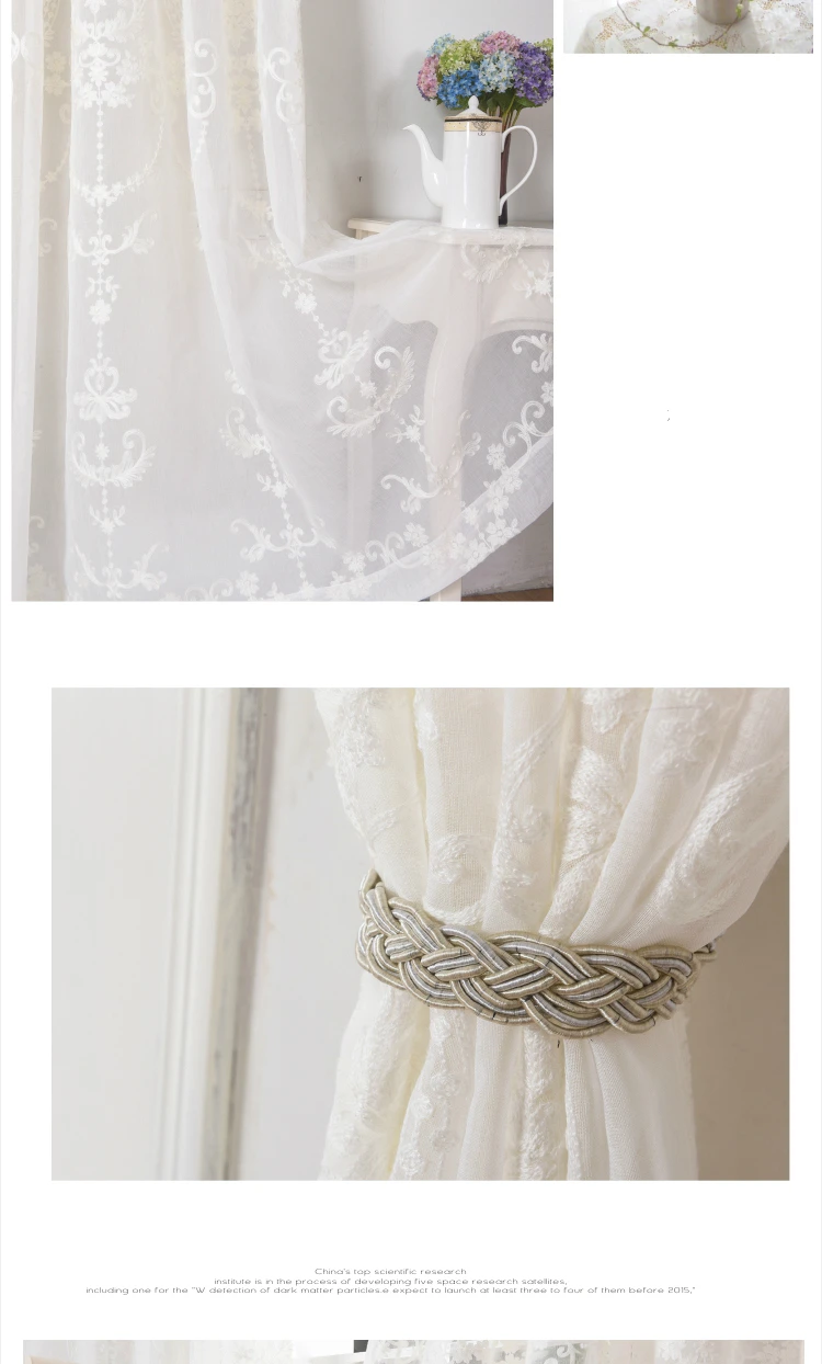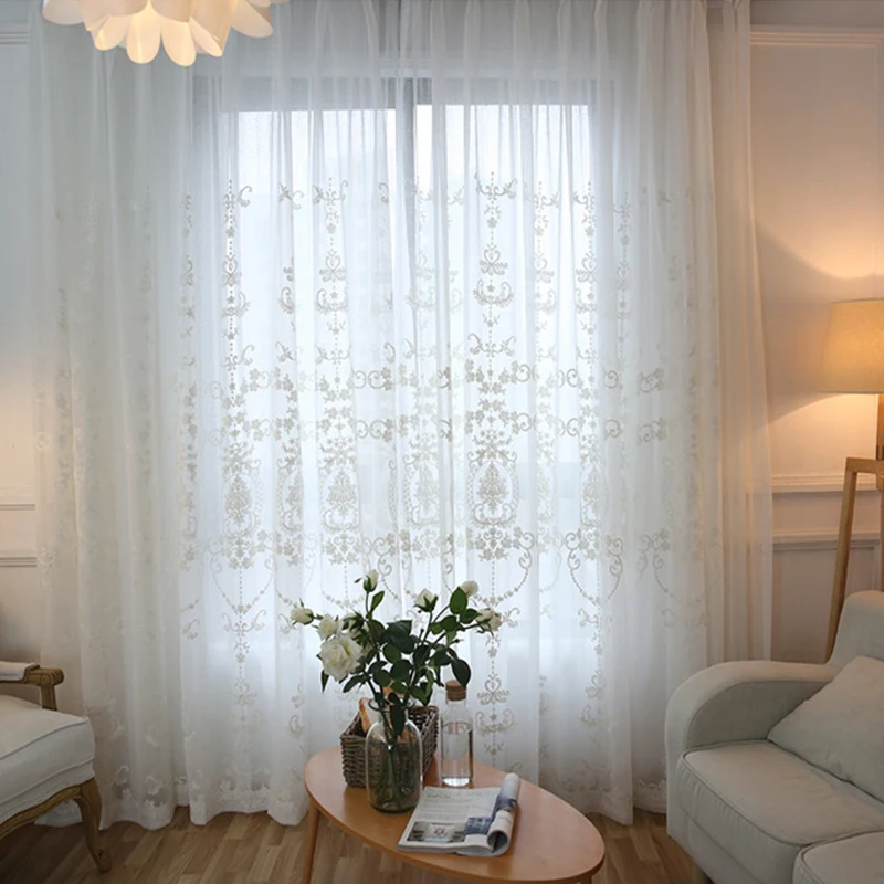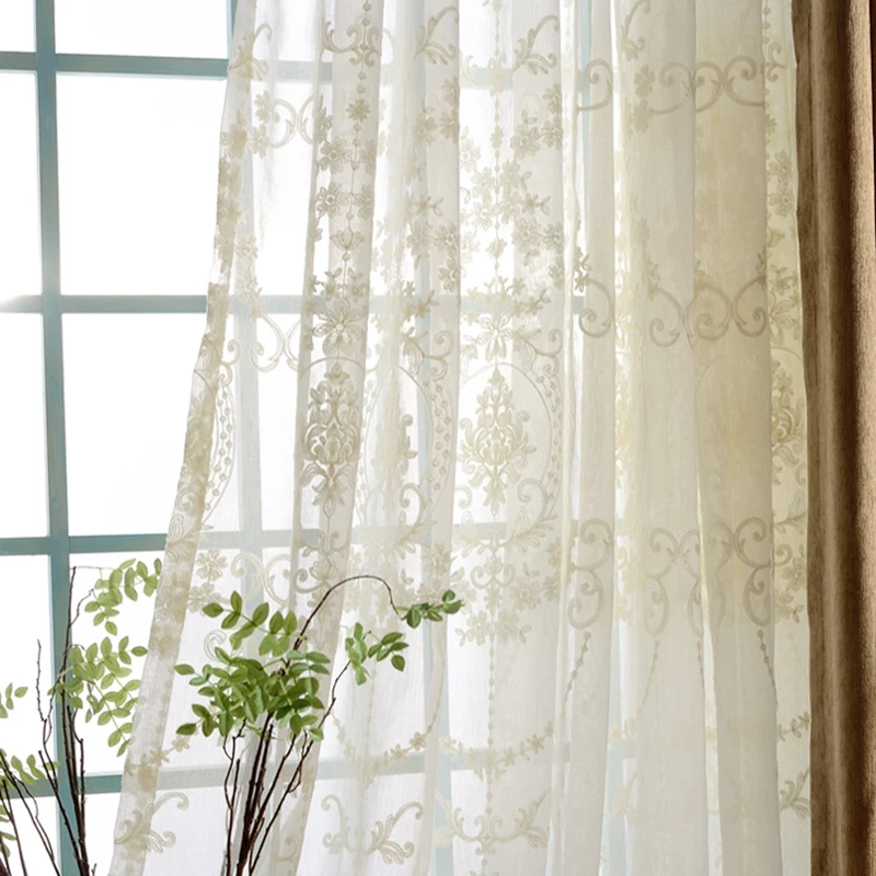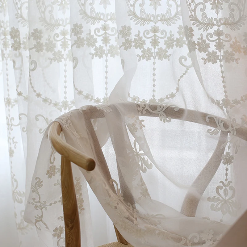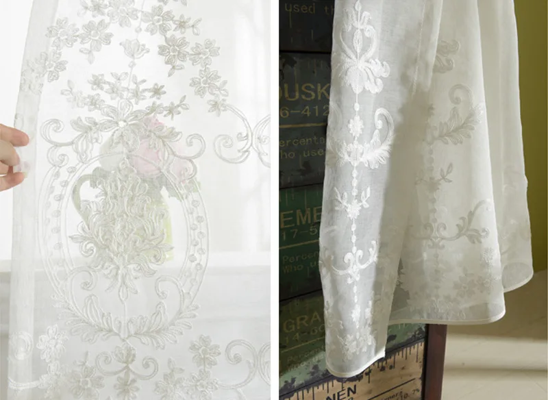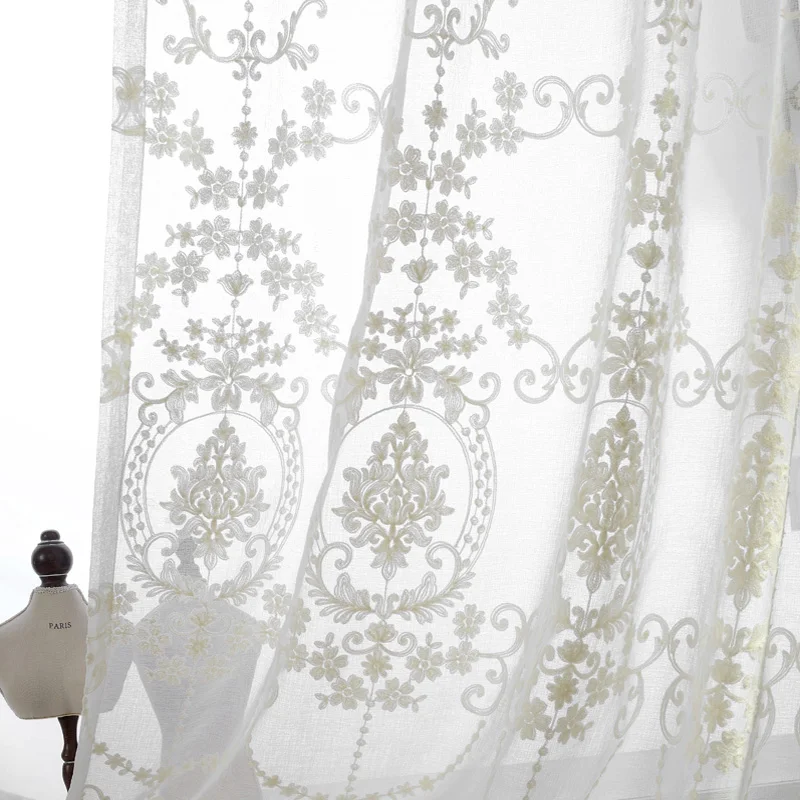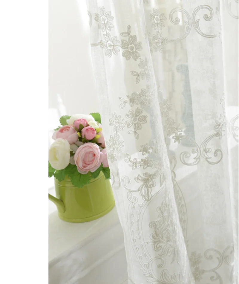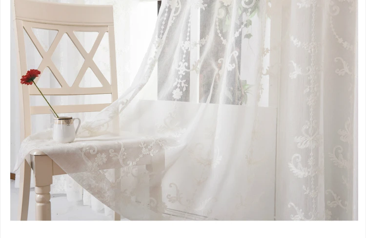 Занавески из вуали в европейском стиле, белые, с цветочной вышивкой...