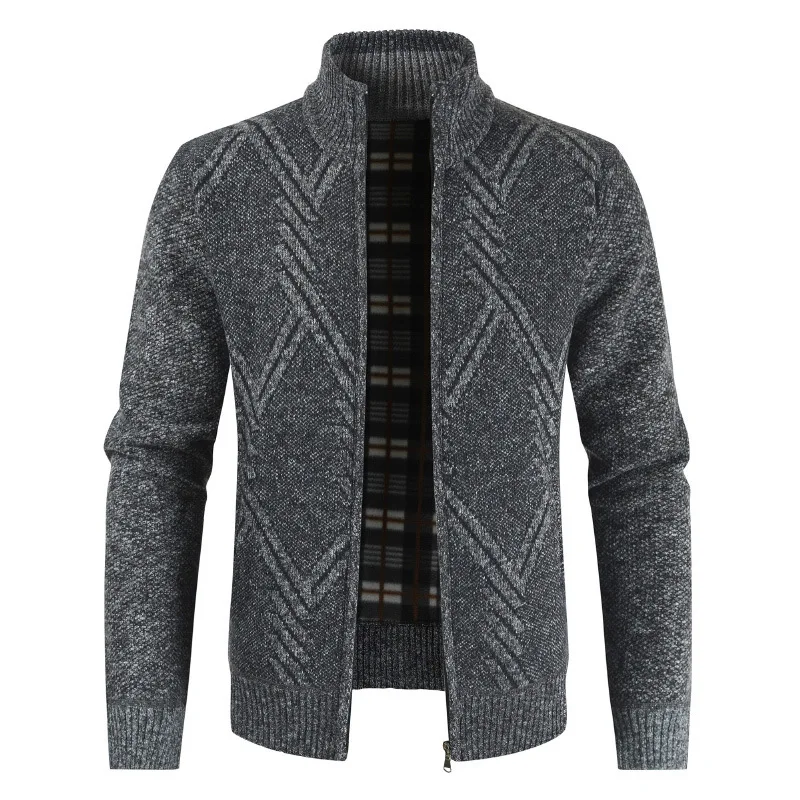Кардиган мужской, с воротником-стойкой, теплый, Осень-зима, 2019