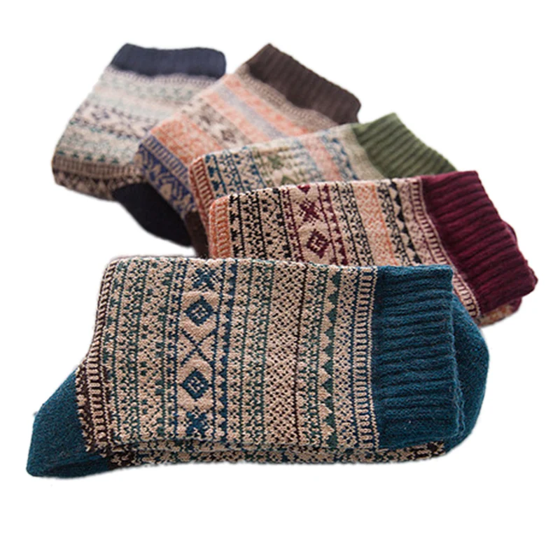 Винтажные полосатые зимние носки, подростковые высококачественные шерстяные носки с кроличьим узором, теплые толстые термоноски носки, подарок на Рождество