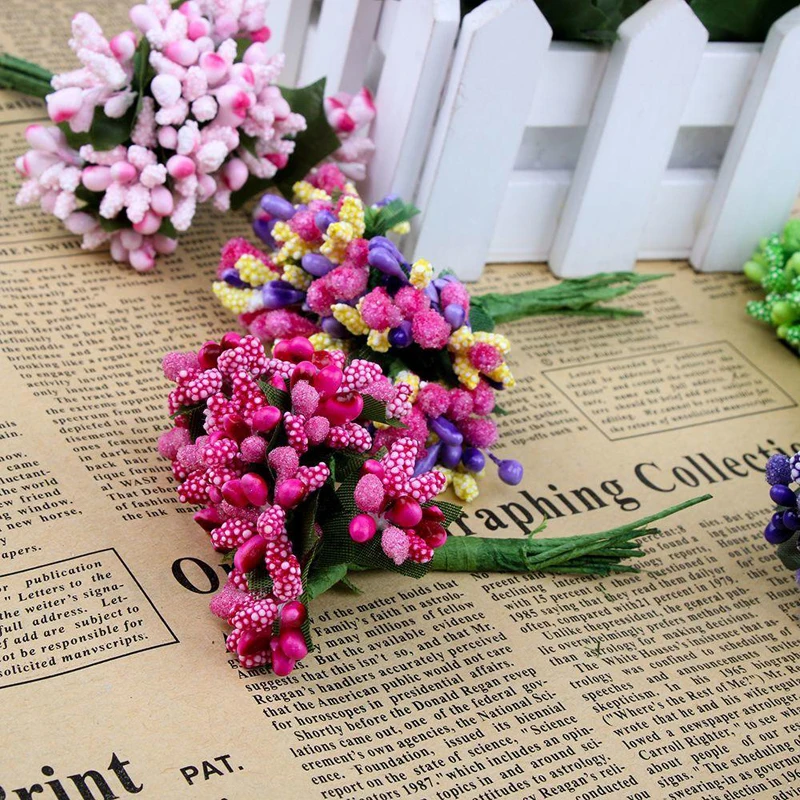 12 шт., искусственные цветные цветастые цветы, мини бутон, букет листьев, цветы для DIY, ручная работа, товары для украшения дома и сада