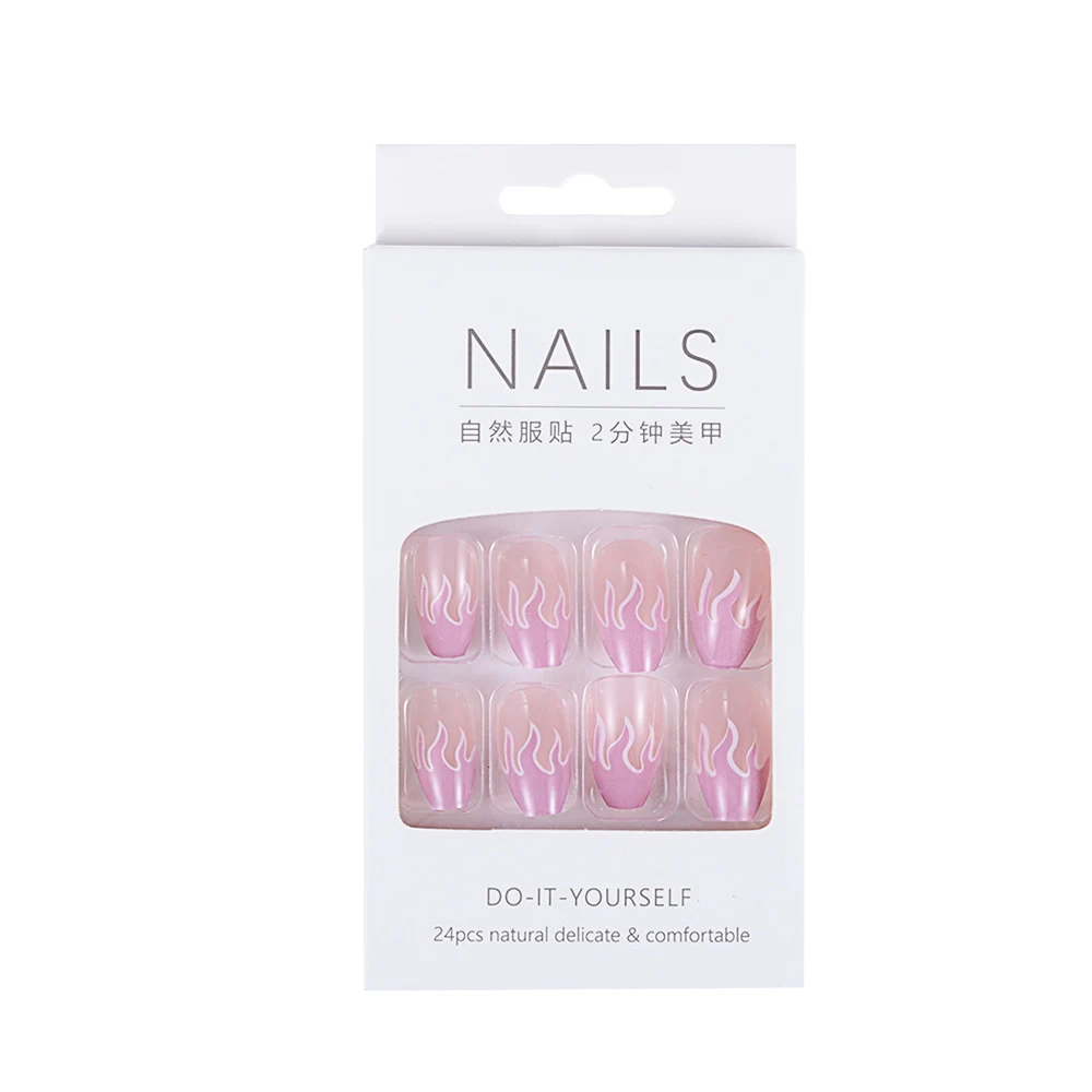 24 шт.кор. в стиле панк пламя огонь стиль накладные ногти стилет ба...