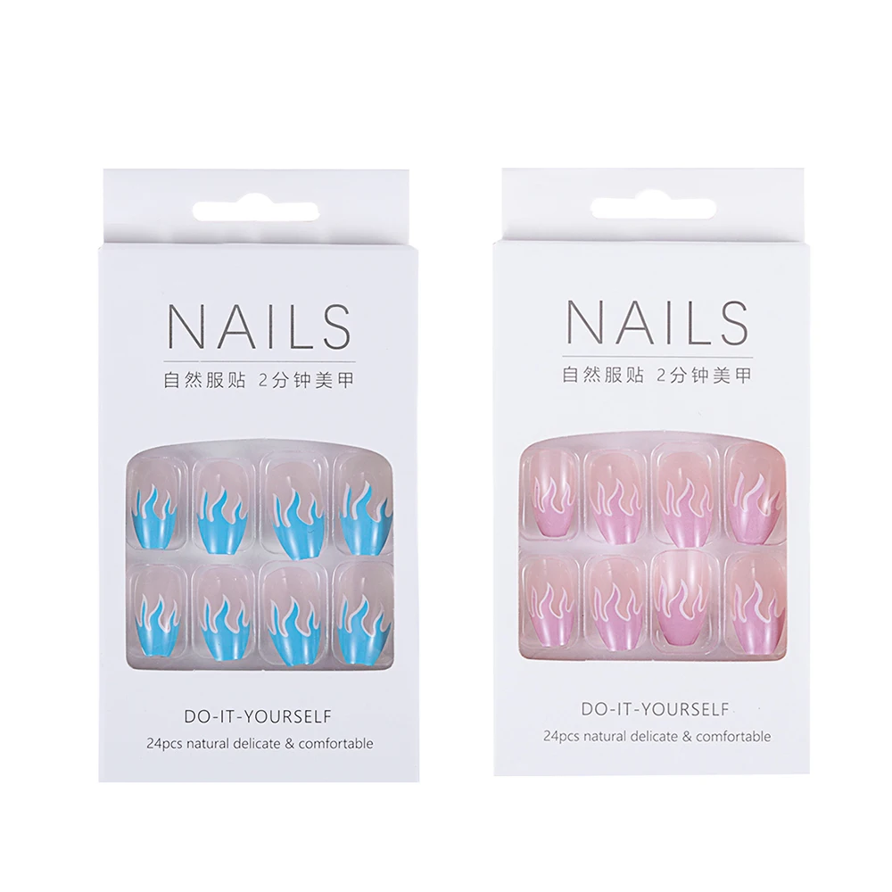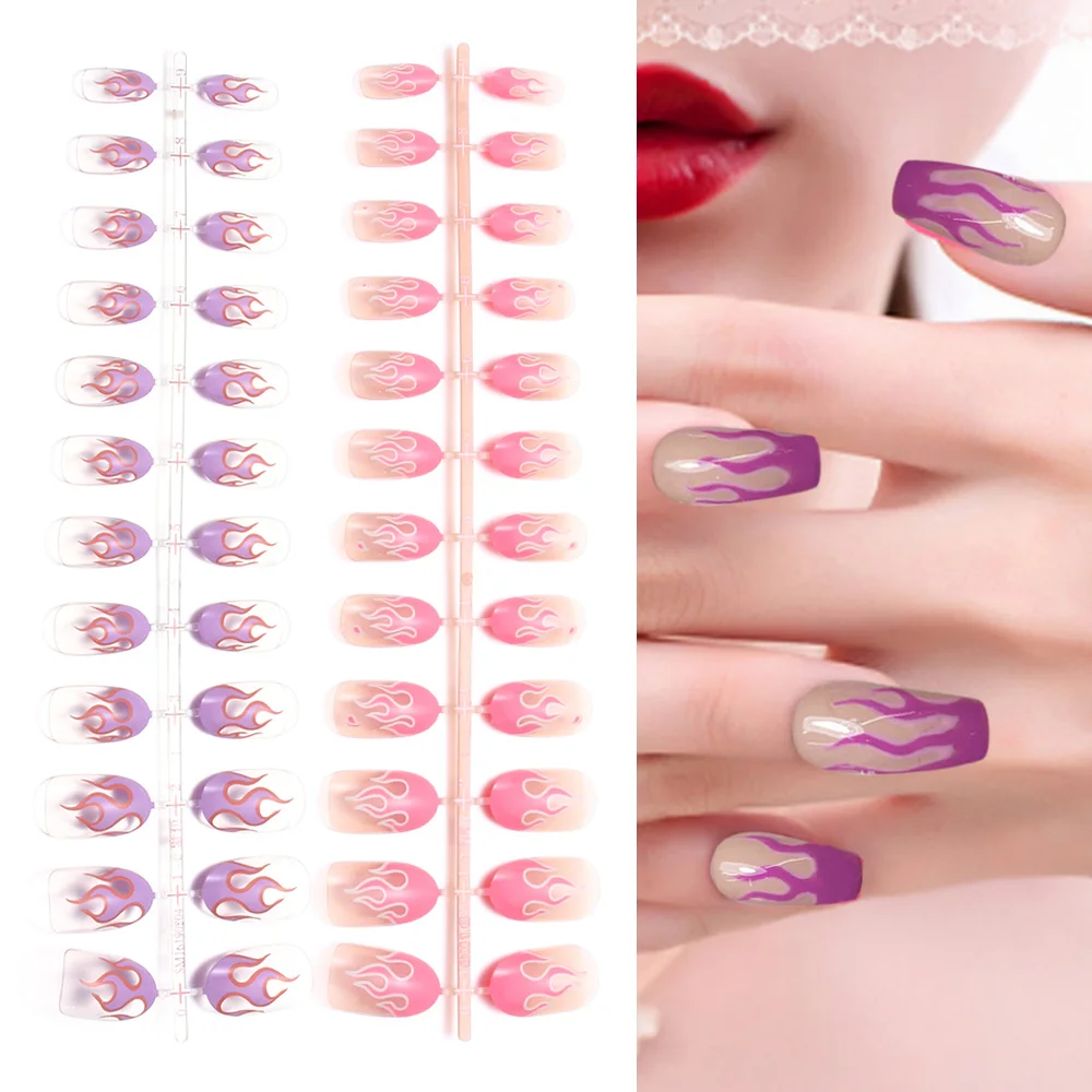 24 шт.компл. в стиле панк с рисунком пламени, накладной Ноготь на п...