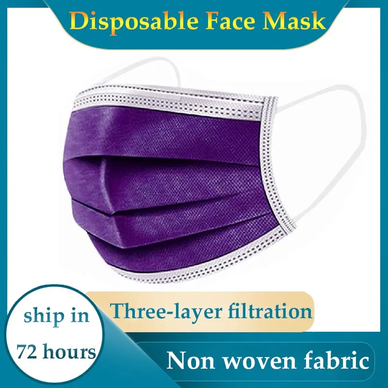 10-500 шт. уход за кожей лица маска одноразовая 3 слоев фильтр Antidust дышащий нетканый материал, изготовленный аэродинамическим способом по технологии маска темно-фиолетовый взрослых маски со ртом для лица