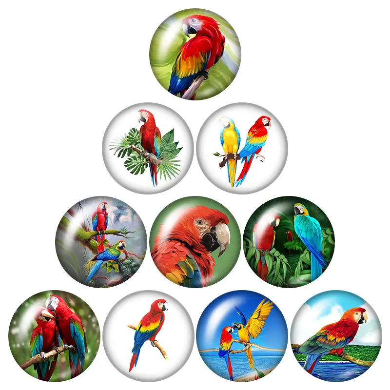 Новый милый попугай Ара Радуга лоркеет птицы 10 шт. 12 мм18 мм20 мм25 мм Круглый Фото стеклянный кабошон демонстрационная фурнитура с плоским основанием