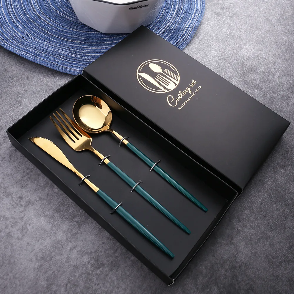 Черный золотой набор посуды с подарочной коробкой металлический нож вилка ложка столовые приборы дисплей