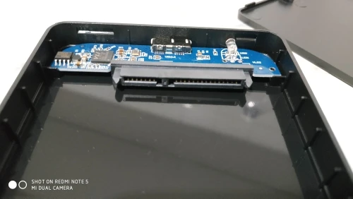 Отличный карман, пластик простой, контроллер фирмы VLI, скорость держит 100 МБ на больших файлах, работает с 500 гиговым диском