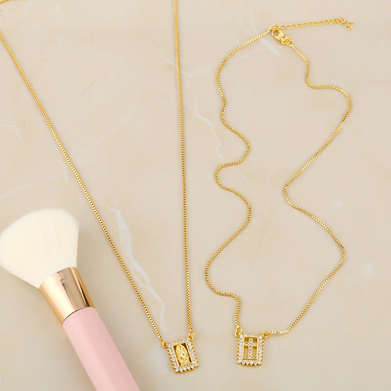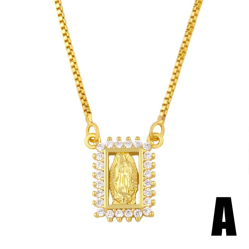 FLOLA кубический цирконий Дева Мария для ожерелья Кристалл крест кулон ожерелье католические украшения подарки Дева Мария nker89