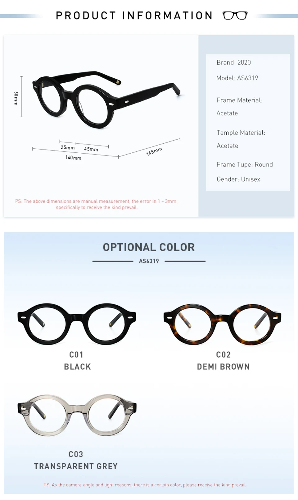 2020 дизайнерская ацетатная оправа для рецептурных очков унисекс круглые модные брендовые мужские сертифицированные дужки AS6319
