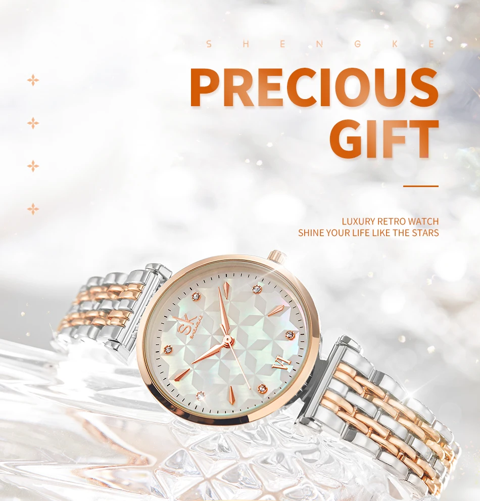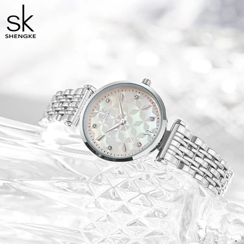 Женские Классические наручные часы Shengke, серебристые, с браслетом, подарок для женщин, оригинальный дизайн