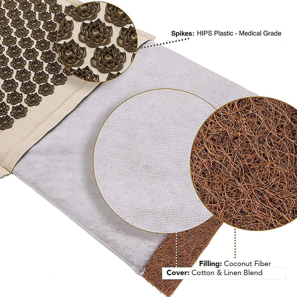Набор ковриков из льна и хлопка, гимнастический коврик для снятия стресса, боли в спине, ногах и теле, для более глубокого сна, массажный коврик для йоги, массажер для акупрессуры