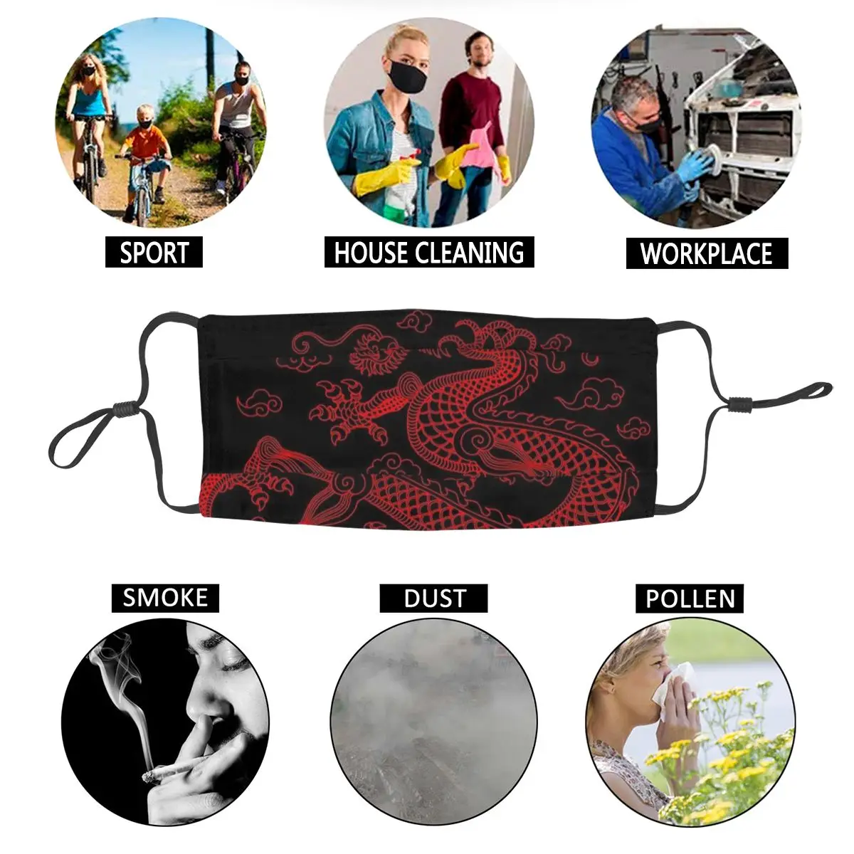 Снятие защищает рот и лицо от пыли, холода, пыльцы, аллергии, тумана и дымки, выхлопных газов,
