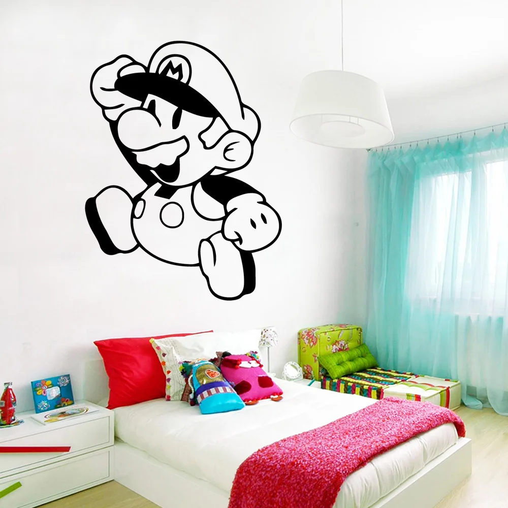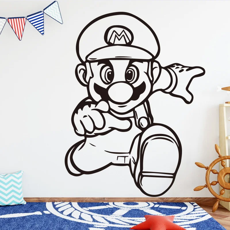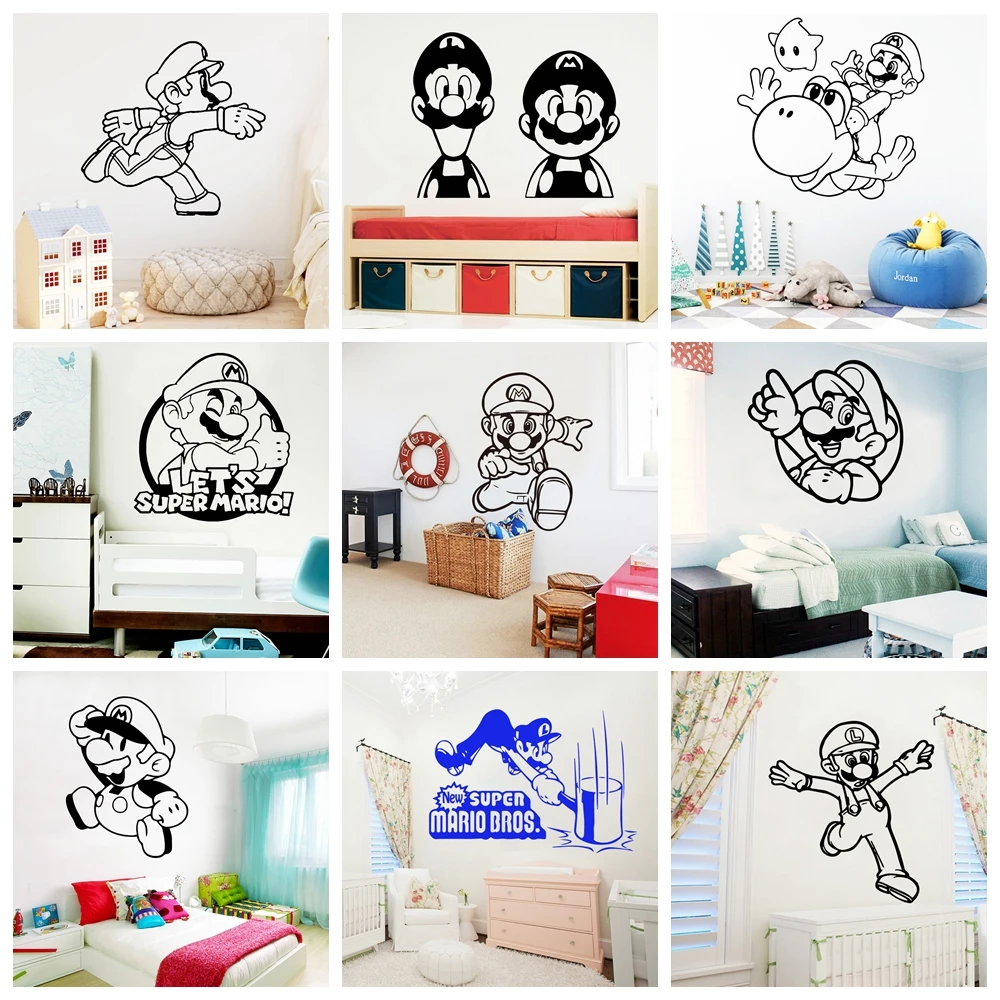 Милые наклейки на стену в стиле Super Mario, наклейки на стену для детской комнаты, декоративные наклейки, игровые обои для мальчиков, игровая комната, виниловые наклейки s