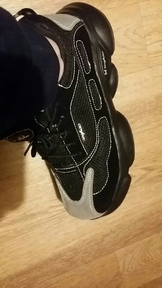 Отличная защитная обувь, чтобы поставить загвоздку, шаблон очень тонкий, и вы должны поставить еще один с большим комфортом