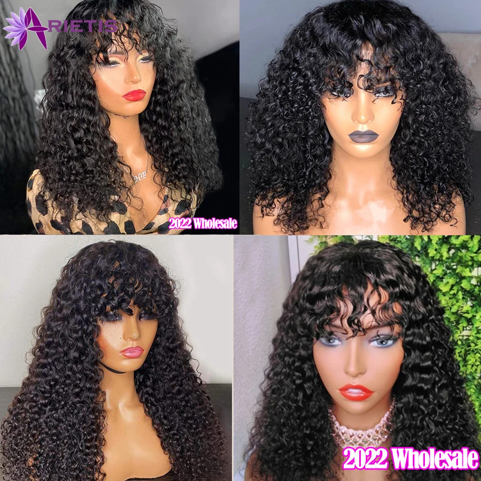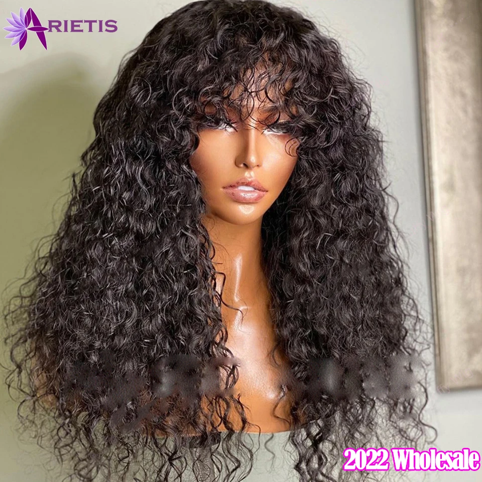 Парик Water Wave, без клея, без шнуровки, передние парики из человеческих волос для женщин, предварительно выщипанные с челкой, 200% плотность, искусственный парик