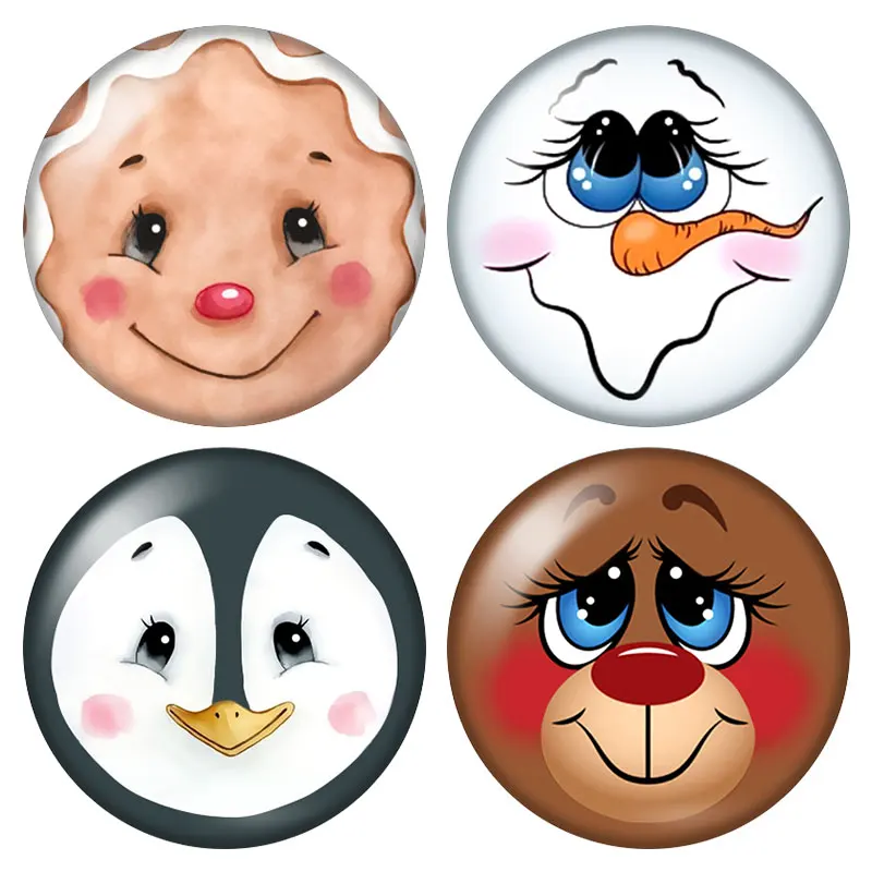 Новое милое печенье снеговик медведь Пингвин мордочка Рождество 10 шт. 12 мм20 мм25 мм круглое фото стекло кабошон плоская обратная сторона изготовления фурнитуры