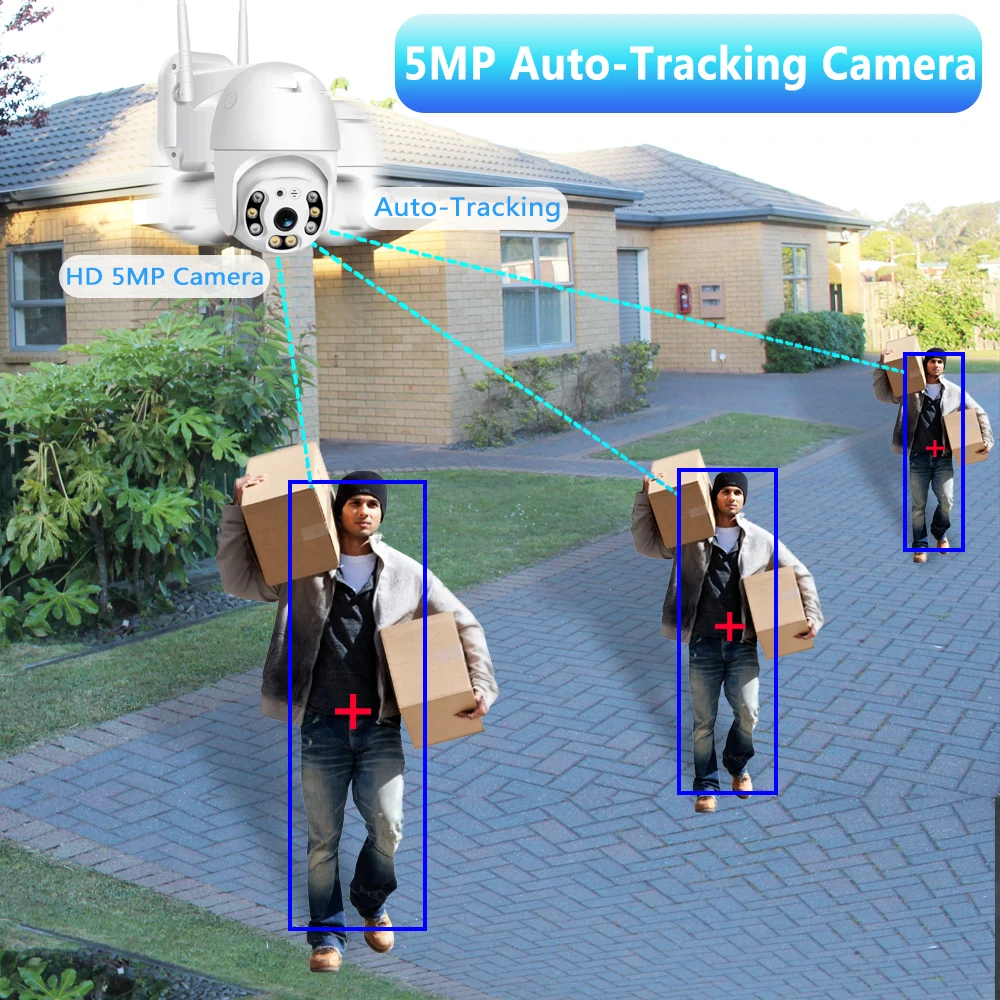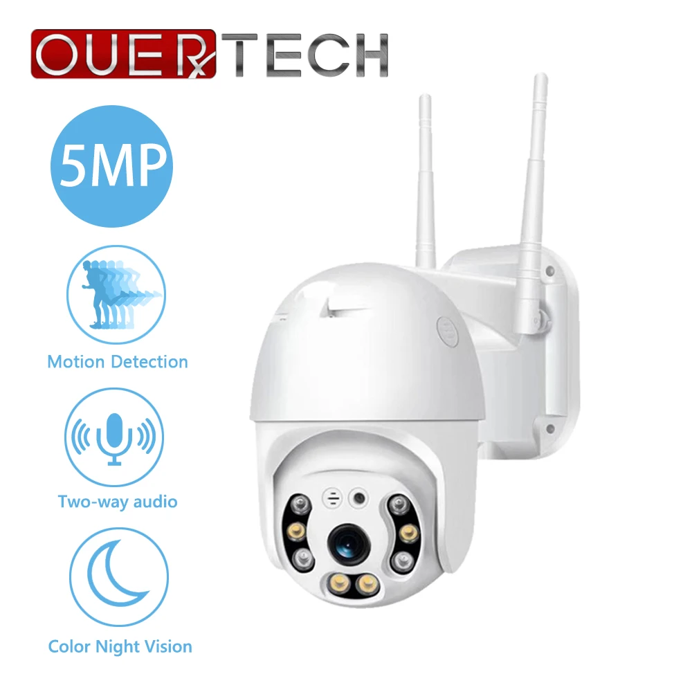 IP-камера OUERTECH, Wi-Fi, PTZ, HD, 3 Мп5 МП, автоматическое отслеживание, двойной источник светильник, уличная, купольная