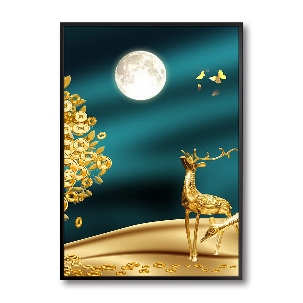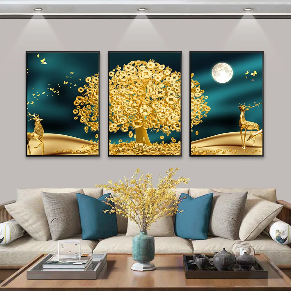 Без рамки золотое дерево холст постер Золотой олень деньги Дерево к...