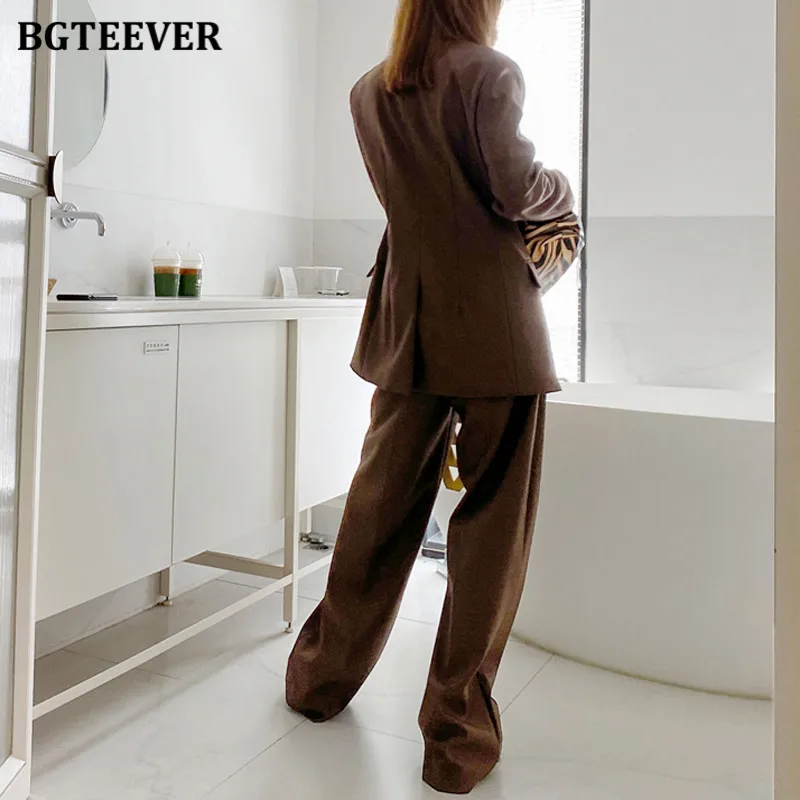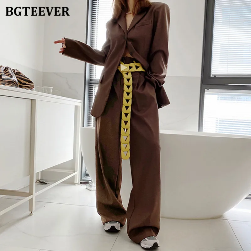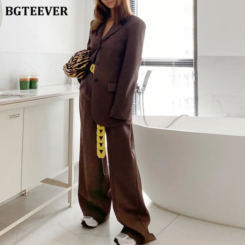 BGTEEVER винтажные женские брючные костюмы оверсайз однобортный костюм куртки и широкие брюки 2020 осенне-зимний женский комплект с блейзером