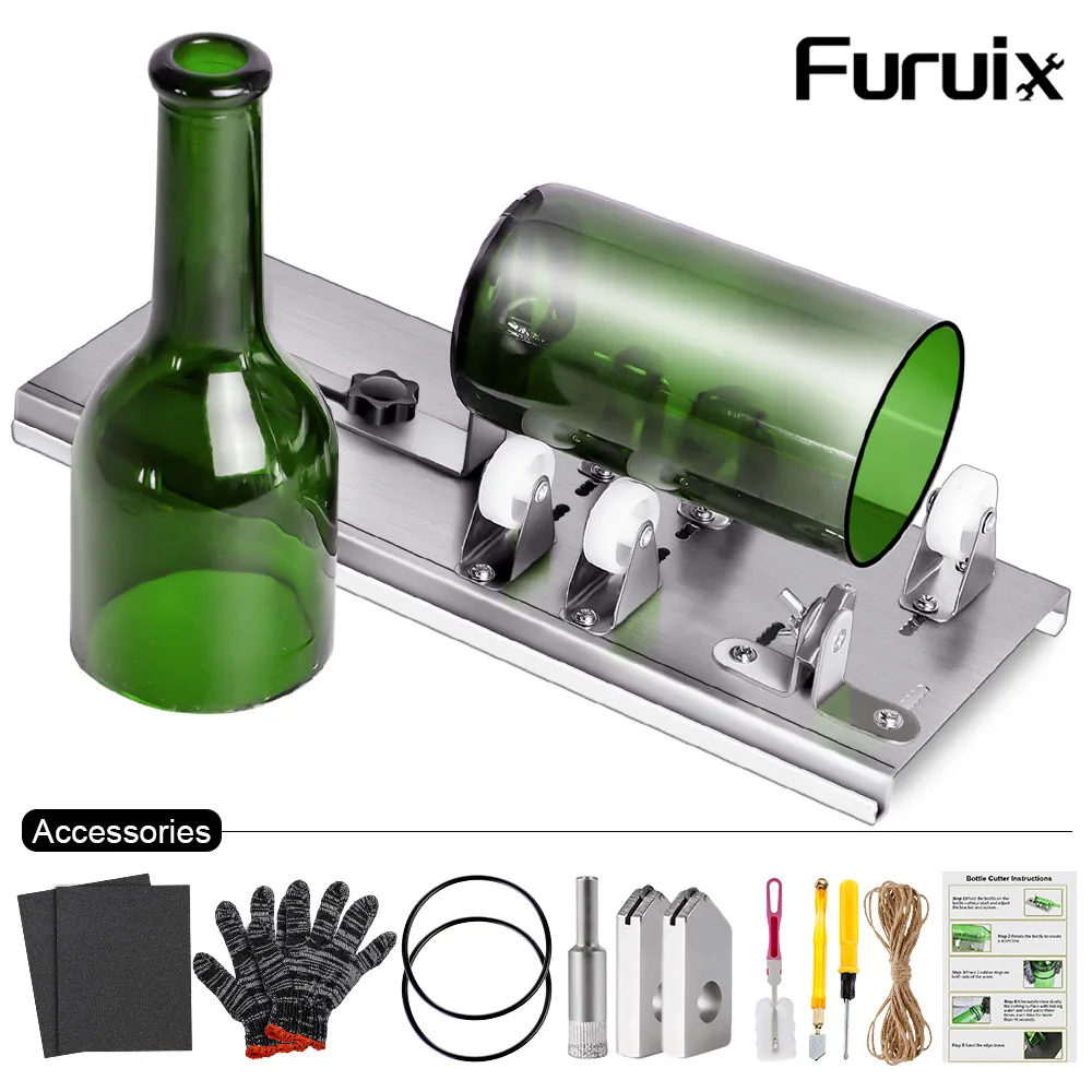 10 шт., станок для резки стеклянных бутылок сделай сам, для резки вина, пива, алкоголь виски, шампанского, перчатки для рукоделия, набор аксессуаров для стеклянных бутылок
