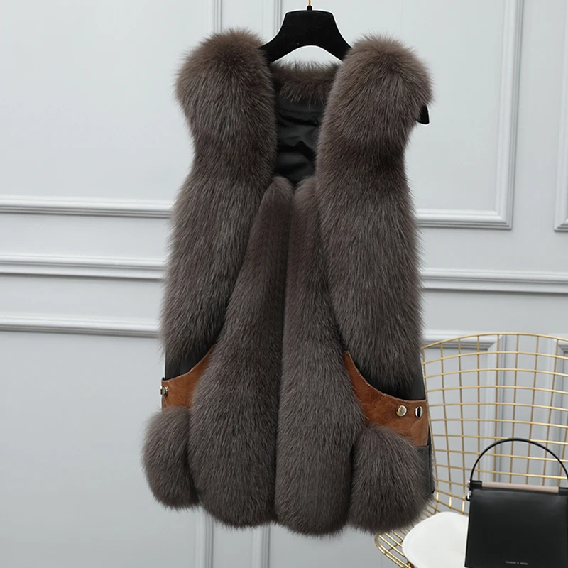 Женские зимние Теплый жилет из натурального меха серебристой лисы, жилет раздельное Повседневное платье одежда без рукавов; Блузка тонкий жилет из искусственного меха; Верхняя одежда