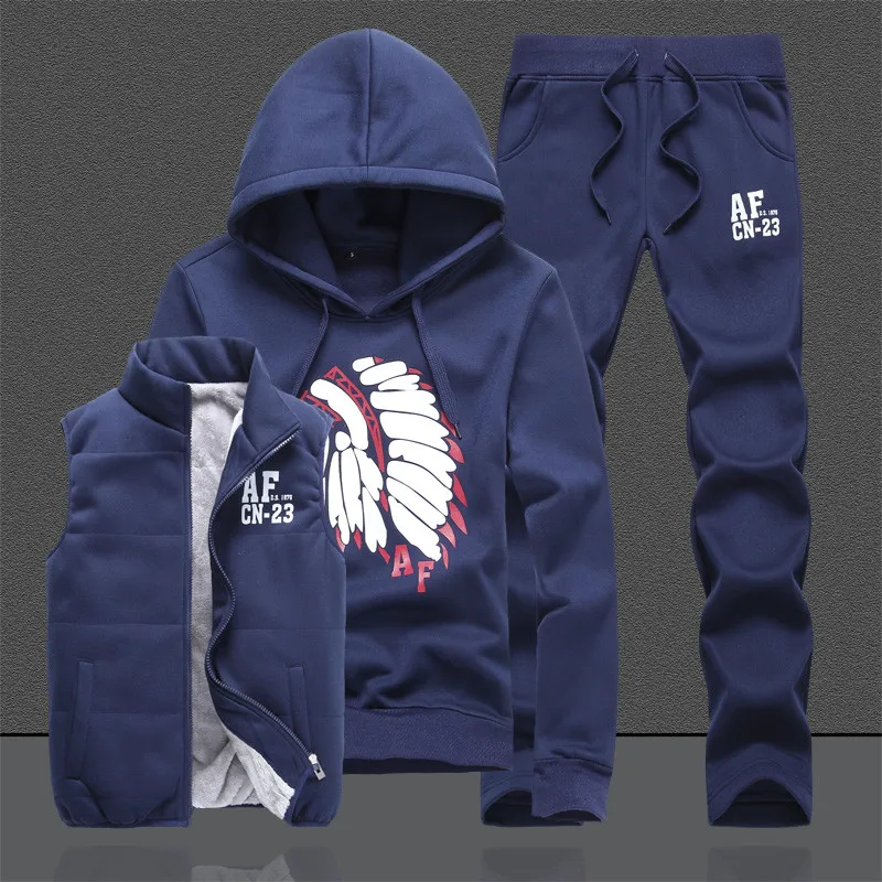 Мужской спортивный костюм из трех предметов, толстовка с капюшоном, штаны и жилет