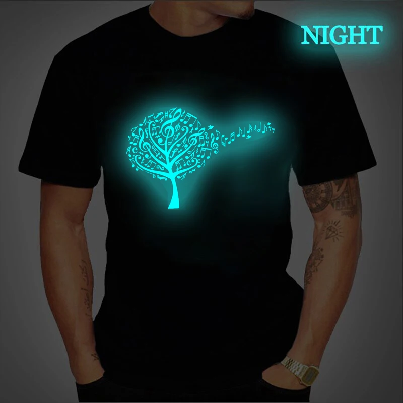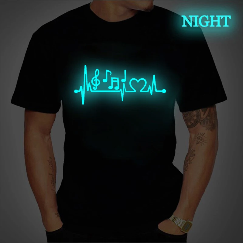 Мужская футболка со светящимся музыкальным символом, черная, на заказ, летняя, Мужская футболка, Готическая футболка, футболки с графическим принтом, мужские топы
