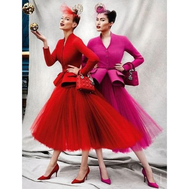 Женская плиссированная юбка, длинная юбка из Красного Тюля, выполненная по индивидуальному заказу, в уличном стиле, 2020
