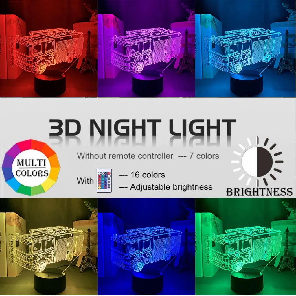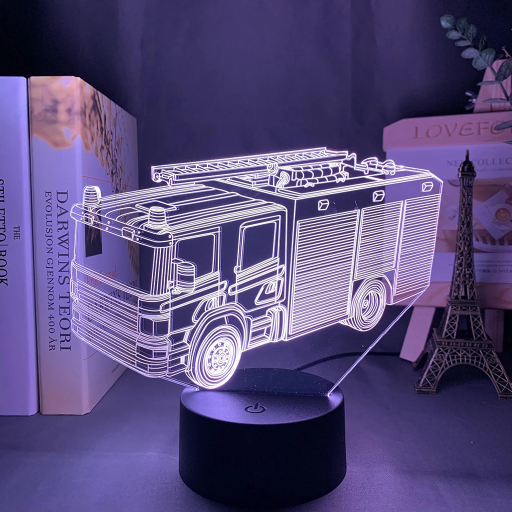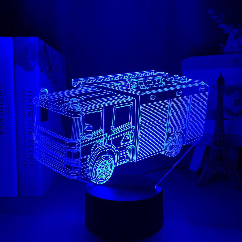 3d иллюзия акриловая пожарная машина Детский Светильник для спальни Декор Светильник Прямая поставка ночсветильник пожарная машина настольная лампа