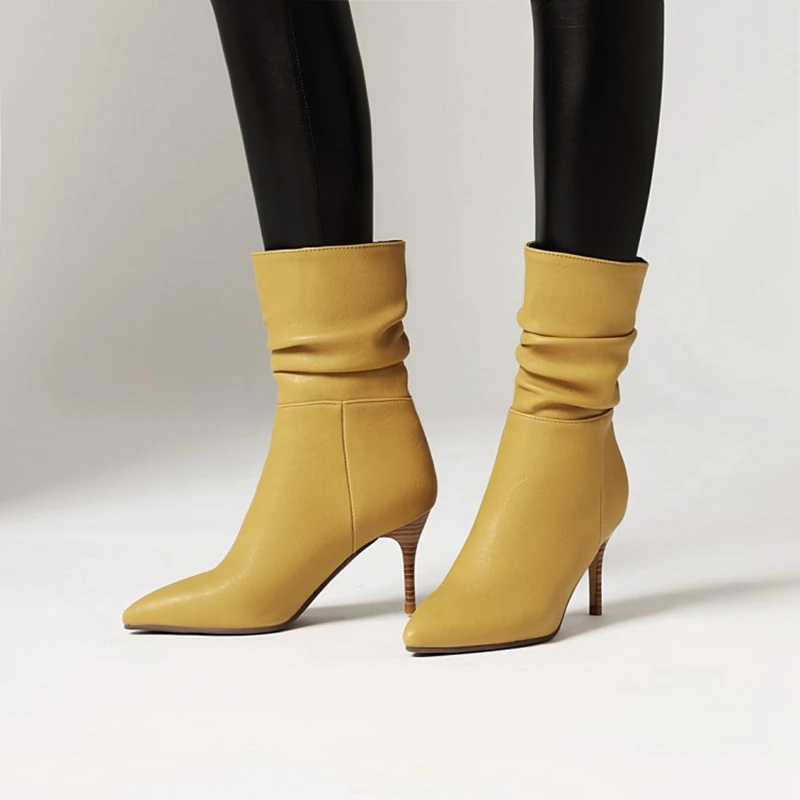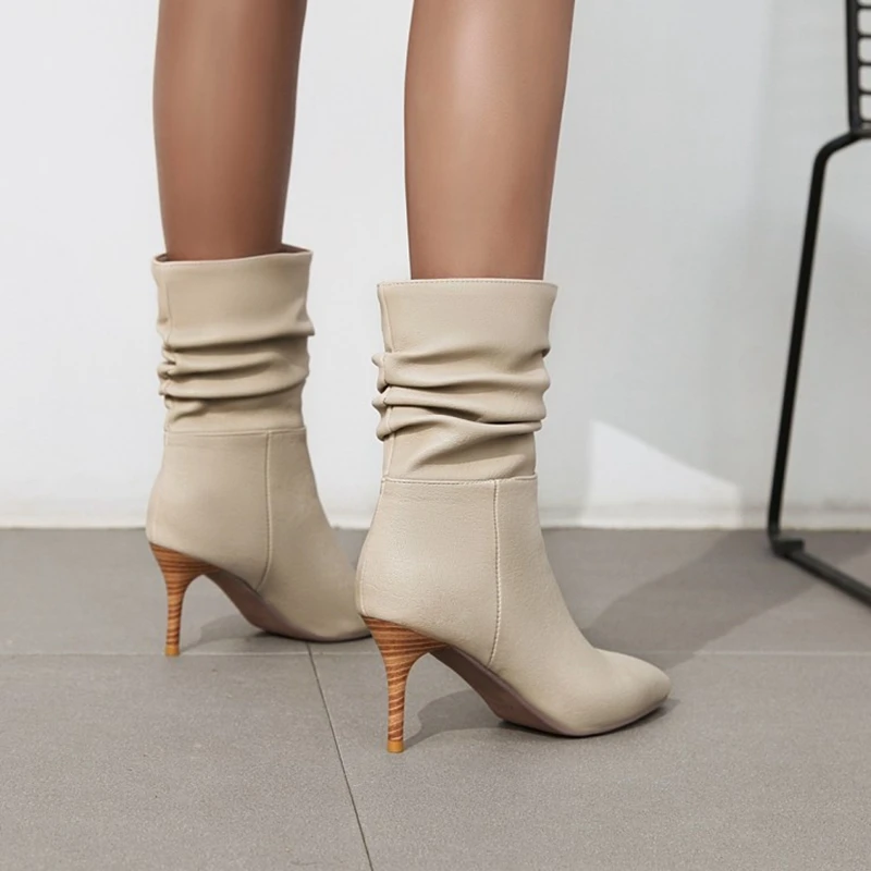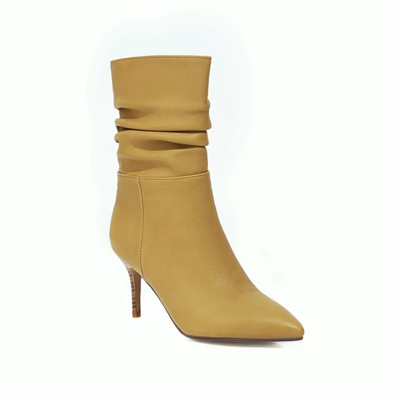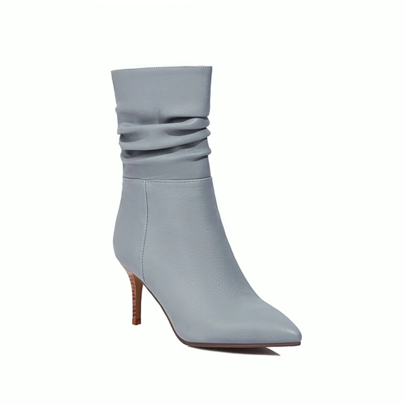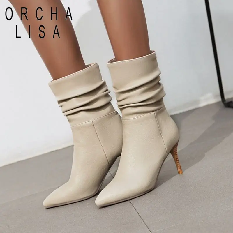 ORCHA LISA2020 плиссированные модные полусапожки на высоком каблуке; Женские зимние сапоги; Офисная Женская обувь на высоком каблуке 8 см; botas botte femme черные, бежевые