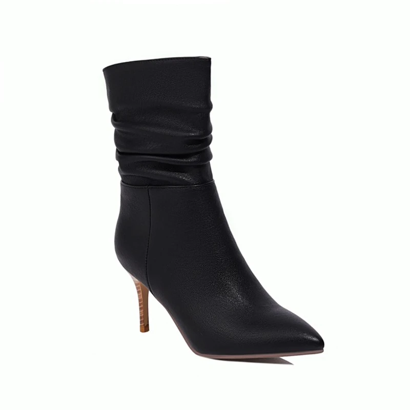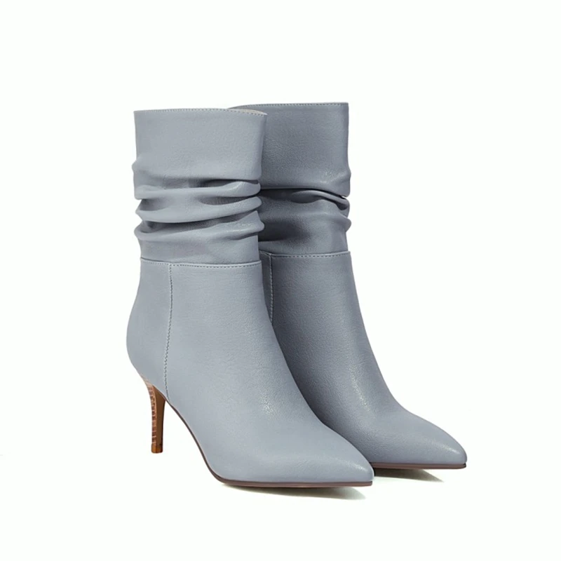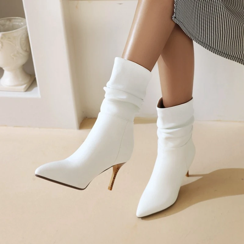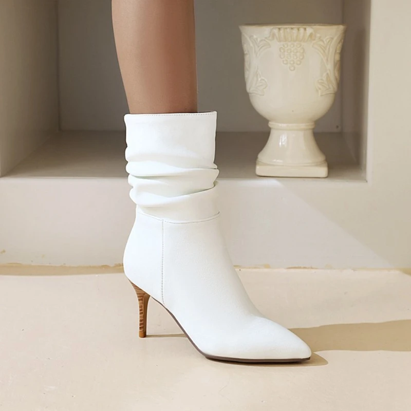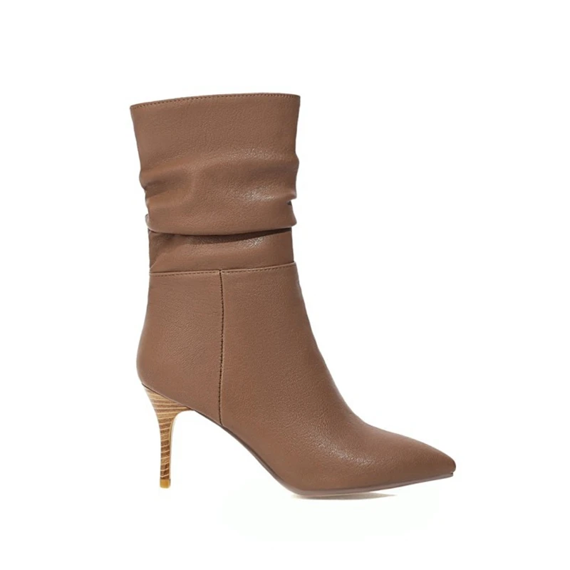 ORCHA LISA2020 плиссированные модные полусапожки на высоком каблуке; Женские зимние сапоги; Офисная Женская обувь на высоком каблуке 8 см; botas botte femme черные, бежевые
