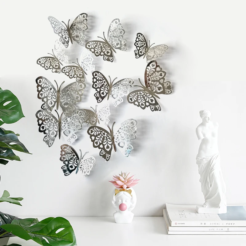 12 шт.компл. 3D Полые фотообои для украшения дома, гостиной, спальни, для вечерние ринки, свадьбы, декор, наклейки-бабочки