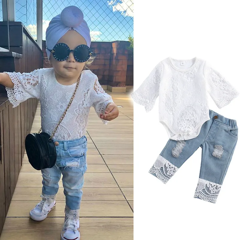 Милый кружевной топ принцессы с игривыми джинсами сделает вашего ребенка элегантным, милым, крутым и милым.