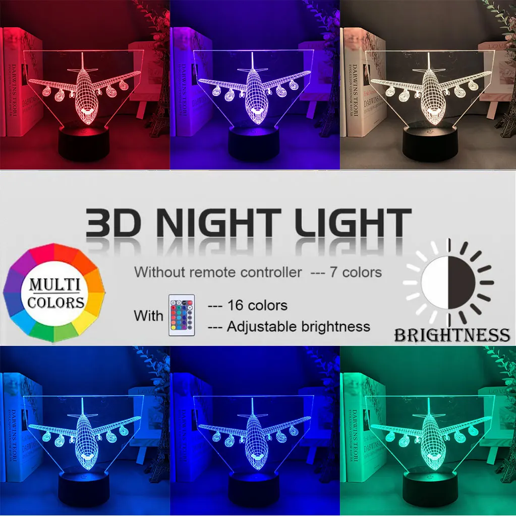 Акриловые 3D Иллюзия светодиодный ночной Светильник модель самолета Ночной светильник подарок для детей Спальня украшение красочный 3D прикроватная лампа