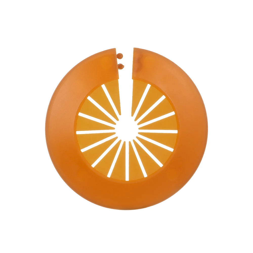 цвет не яркий, не оранжевый. Ближе к светло-кирпичному, очень красивый - это тем, кто выбирает под цвет плитки. Пластик крепкий, тоненький. размер берите с запасом. Впритык тяжело одевать.