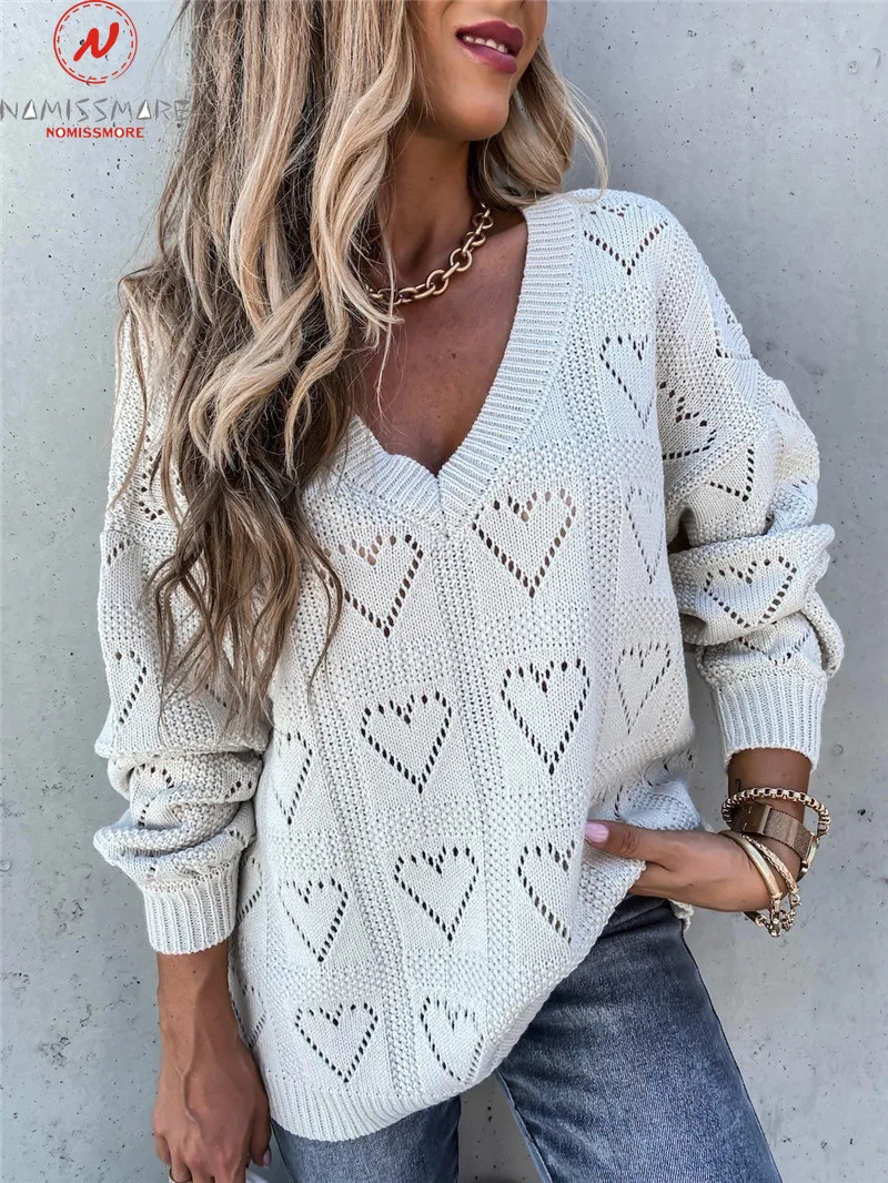 Свитер женский однотонный, с V-образным вырезом и длинными рукавами