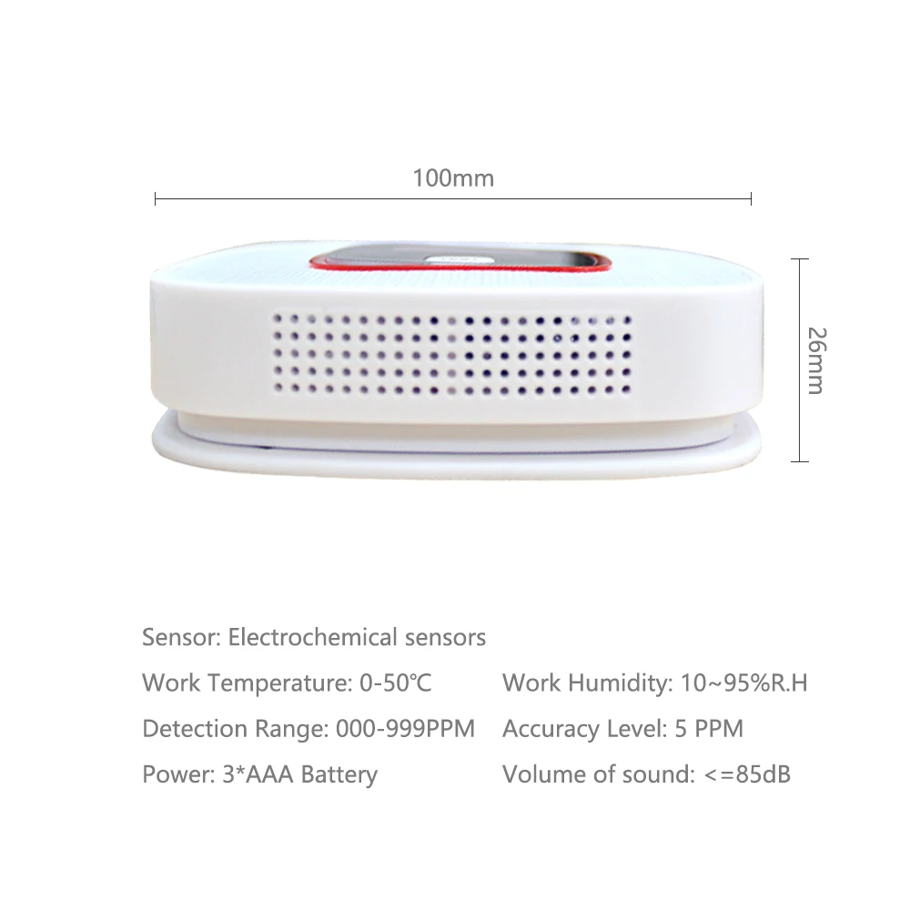 【Компонент advantage】оповещение о голосовом оповещении человека, высоконадежный электрохимический датчик, отображение концентрации окиси корбона (PPM), низкое потребление тока, сверхдлительное время работы в режиме ожидания, функция памяти сигнализации, Подсказка о низком заряде батареи, автоматическое Обнаружение неисправности датчика.