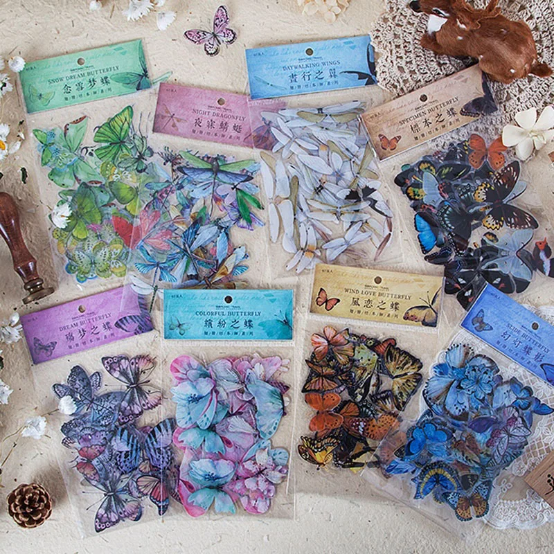 Наклейки цветные из ПВХ, с бабочкой, стрекозой, альбом для декоративных наклеек, 8 видов стилей, 1 упаковка (40 шт.)