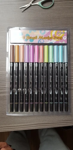Это супер красивые цвета, я сделал тест на толстой бумаге, чтобы показать вам, с другой стороны, крышки очень трудно открыть, а листы не одинакового размера, Тонкие стороны не все имеют одинаковую твердость, а некоторые действительно очень тонкие, в то время как другие имеют мягкие и толстые кончики, мы теряем точно, то же самое для боковой части кисти с более или менее мягкими наконечниками, которые меняют толщину, но и способ ее использования, это очень позор.
